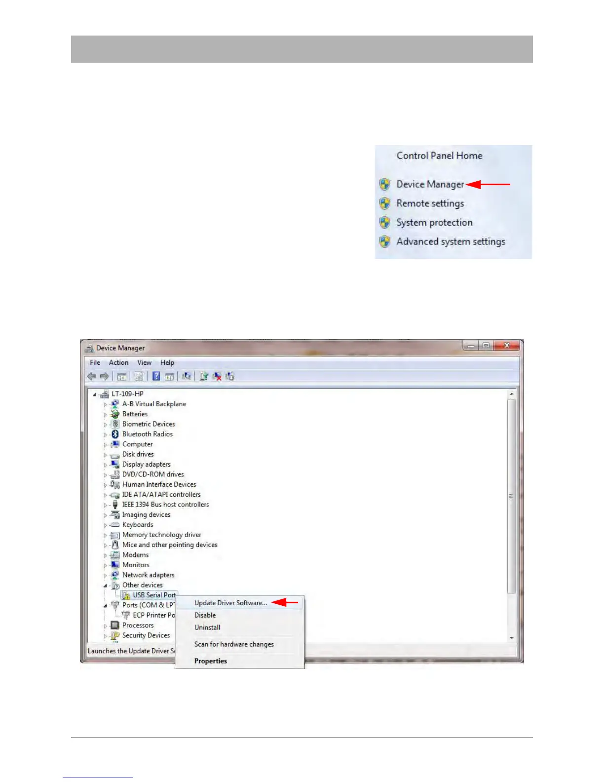 6. As shown below, find the unknown device in the Device Manager. Right click the device and