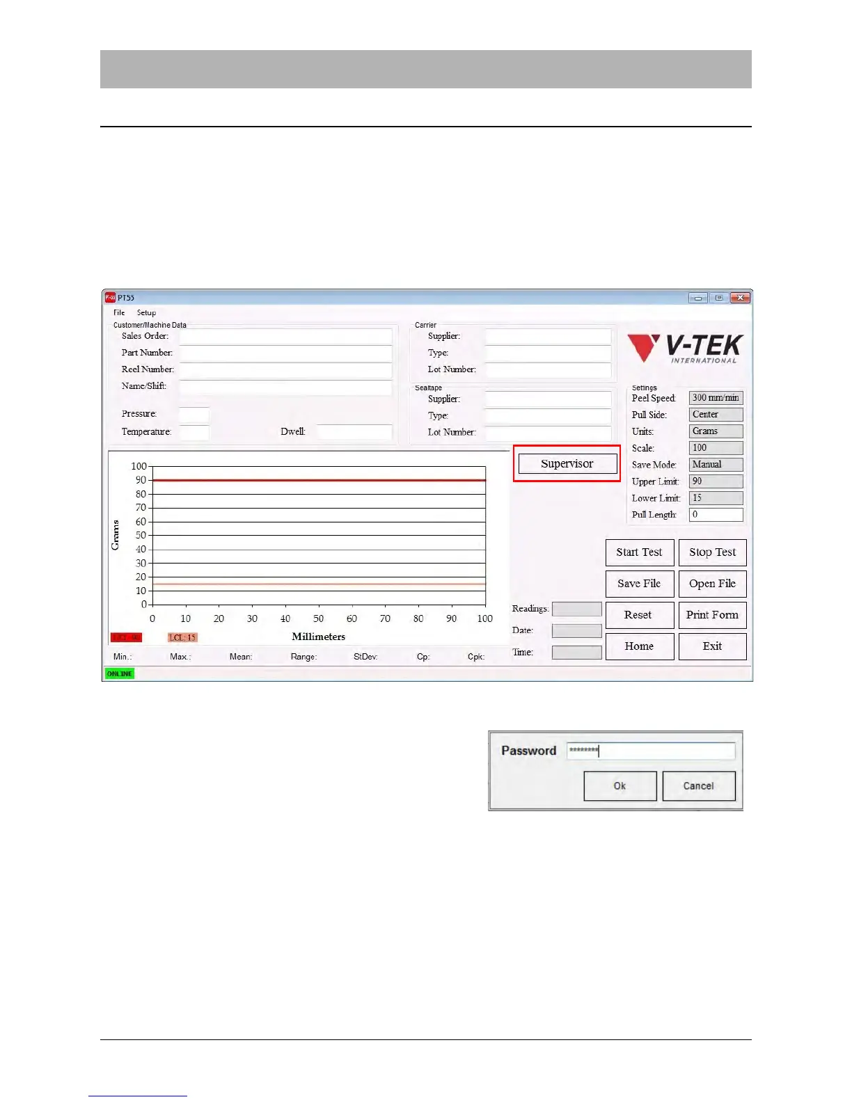 force test. When auto tension is selected and a value is entered, the peel force graph will wait