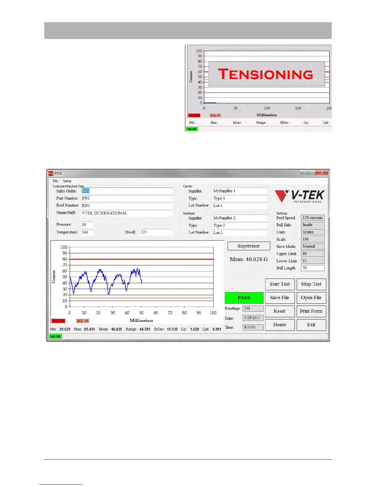 7. The PT-55 will then automatically reset the graph and begin plotting the peel force test.