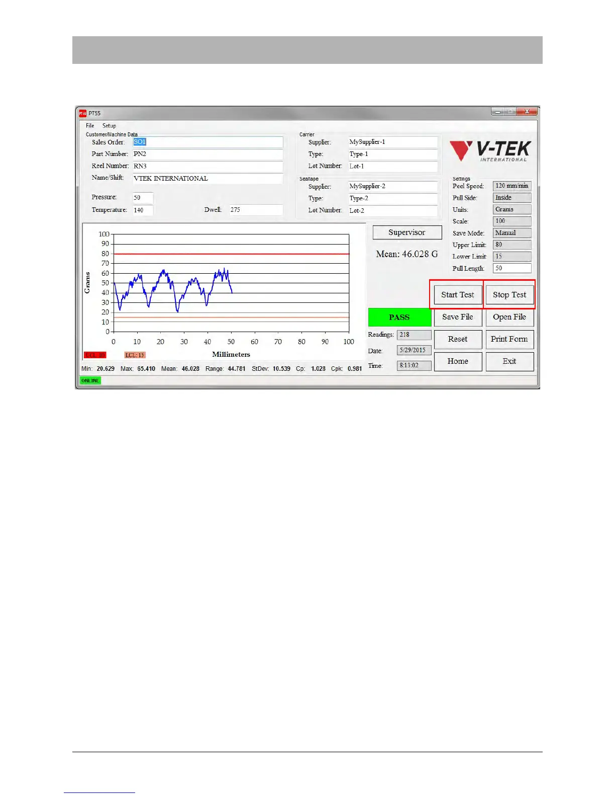 may also press the Stop Test button when enough data has been gathered to complete the