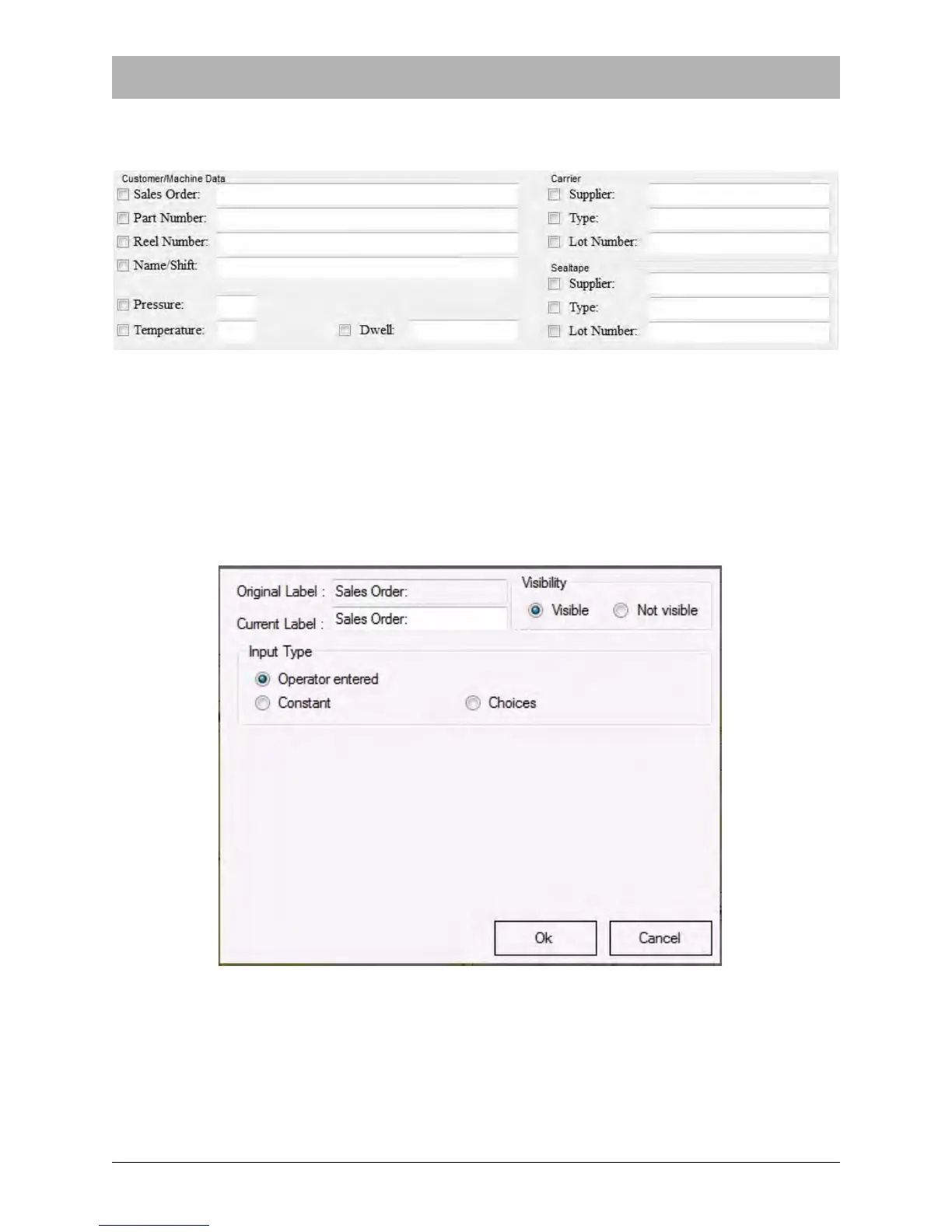 The Change Data window allows the user to customize each field’s Label, Visibility and Input