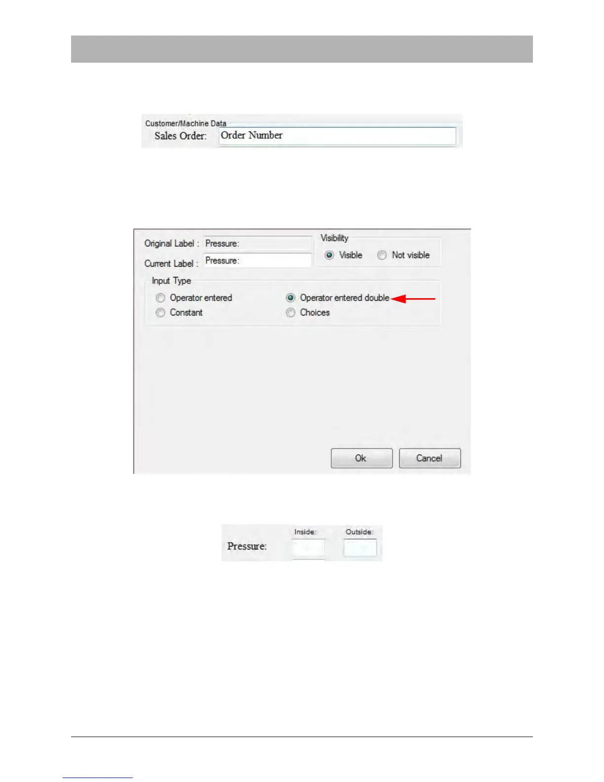 and Outside Seal data for those two categories of information. The Pressure field label is