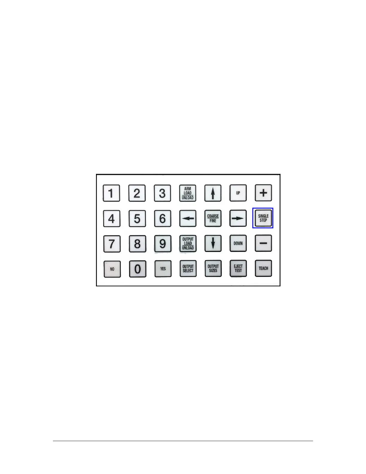 6. Press the NO key to terminate the cycle. The Arm will move to the right to the