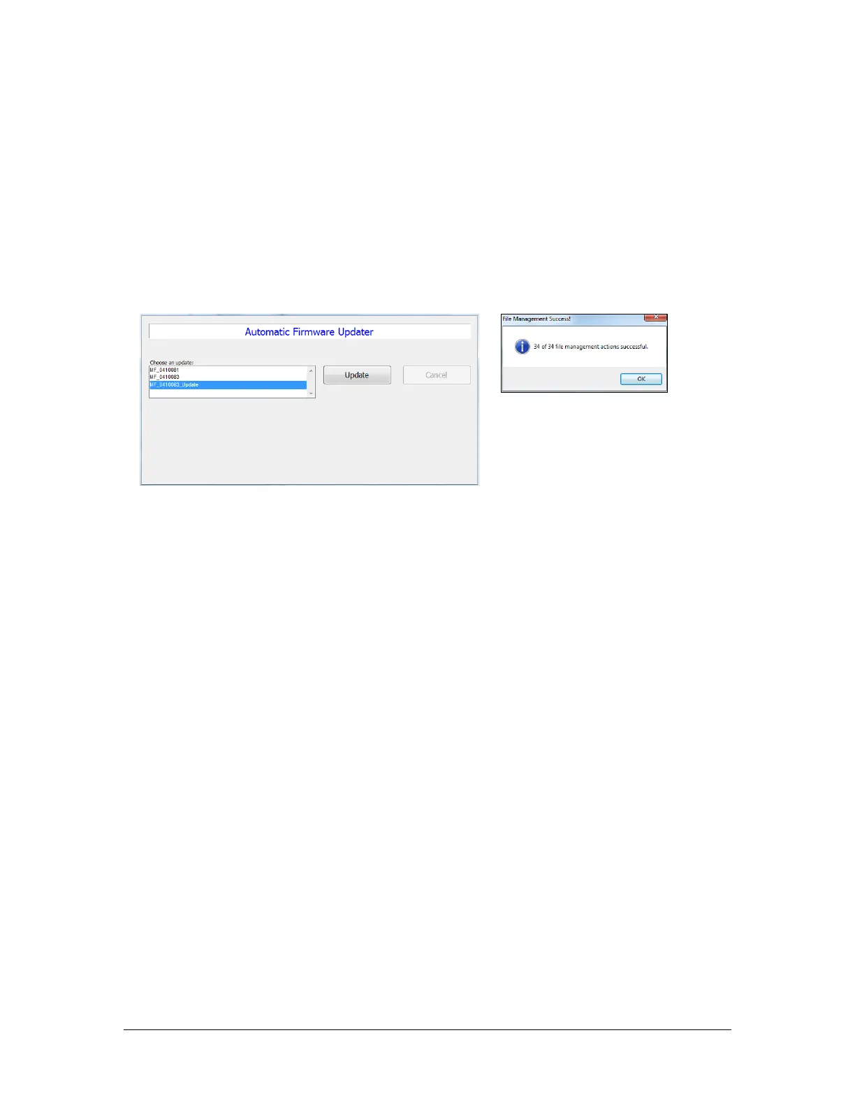 3. Once the update has completed a File Management Success dialog will appear and
