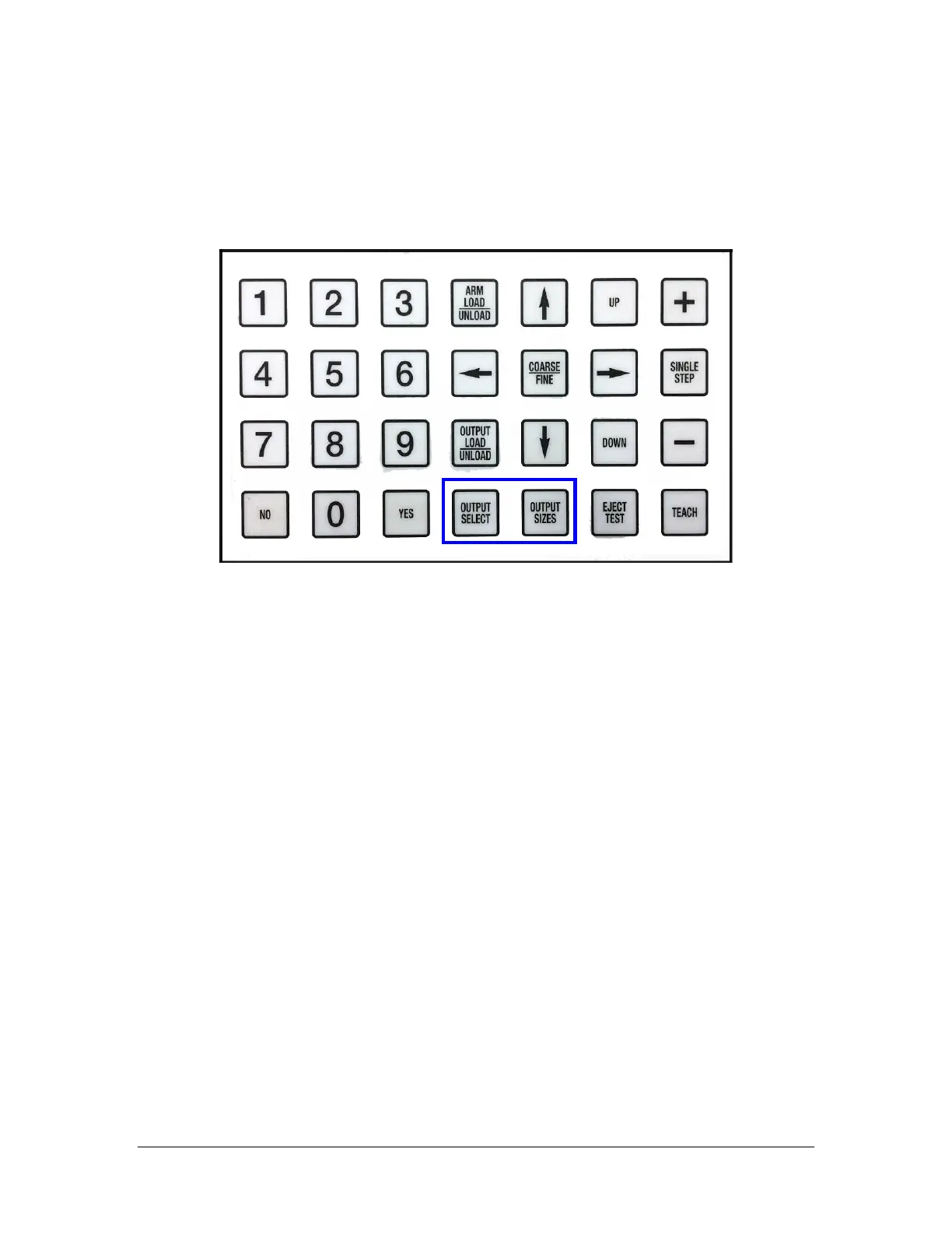 The OUTPUT SELECT menu is used to process Recipes, select Pick and Place mode, and