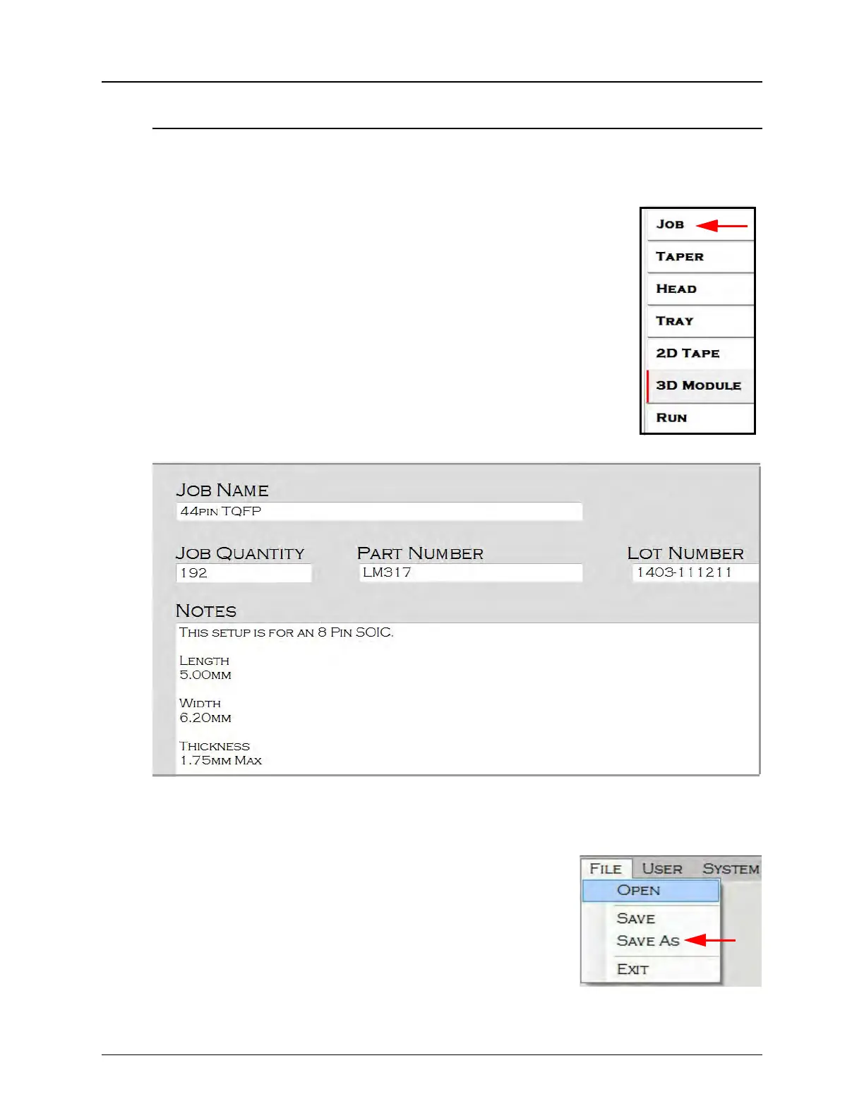 1. Select JOB from the HMI tab menu to open the Job Settings