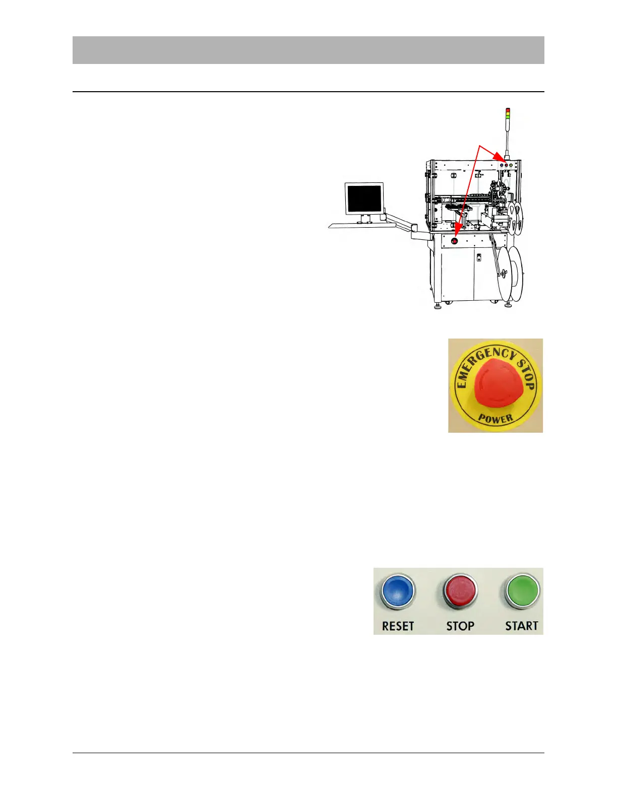 ing red and all operations will cease. On the HMI, an E-Stop status