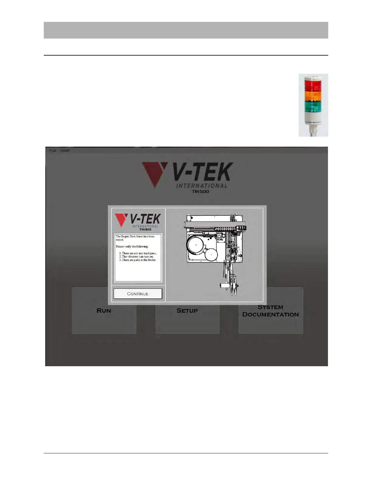 the error. System Alarms will also appear if the TM-500 needs to be adjusted before operation