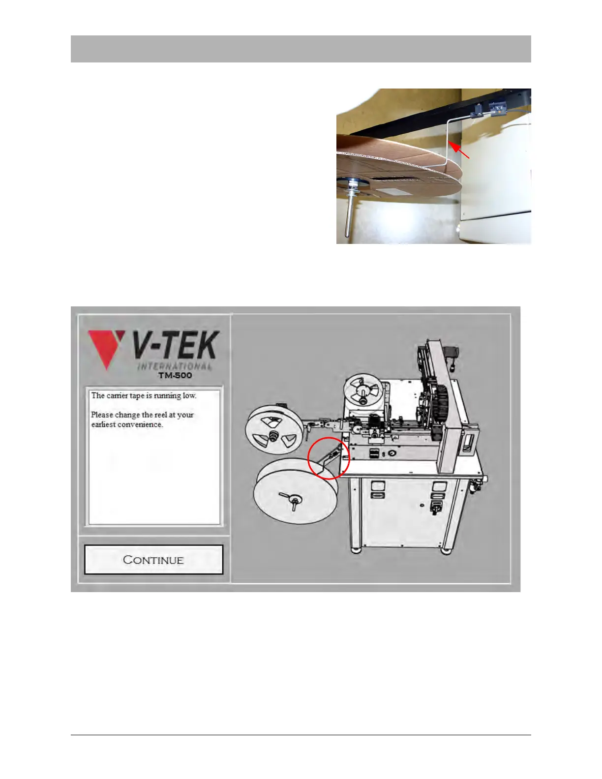 When the Low Carrier Tape system alarm is activated, tape advance stops, a beep sounds and a