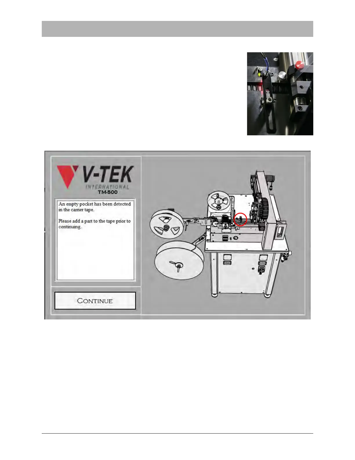 To clear the Empty Pocket System Alarm, place a correctly oriented part in the empty pocket.