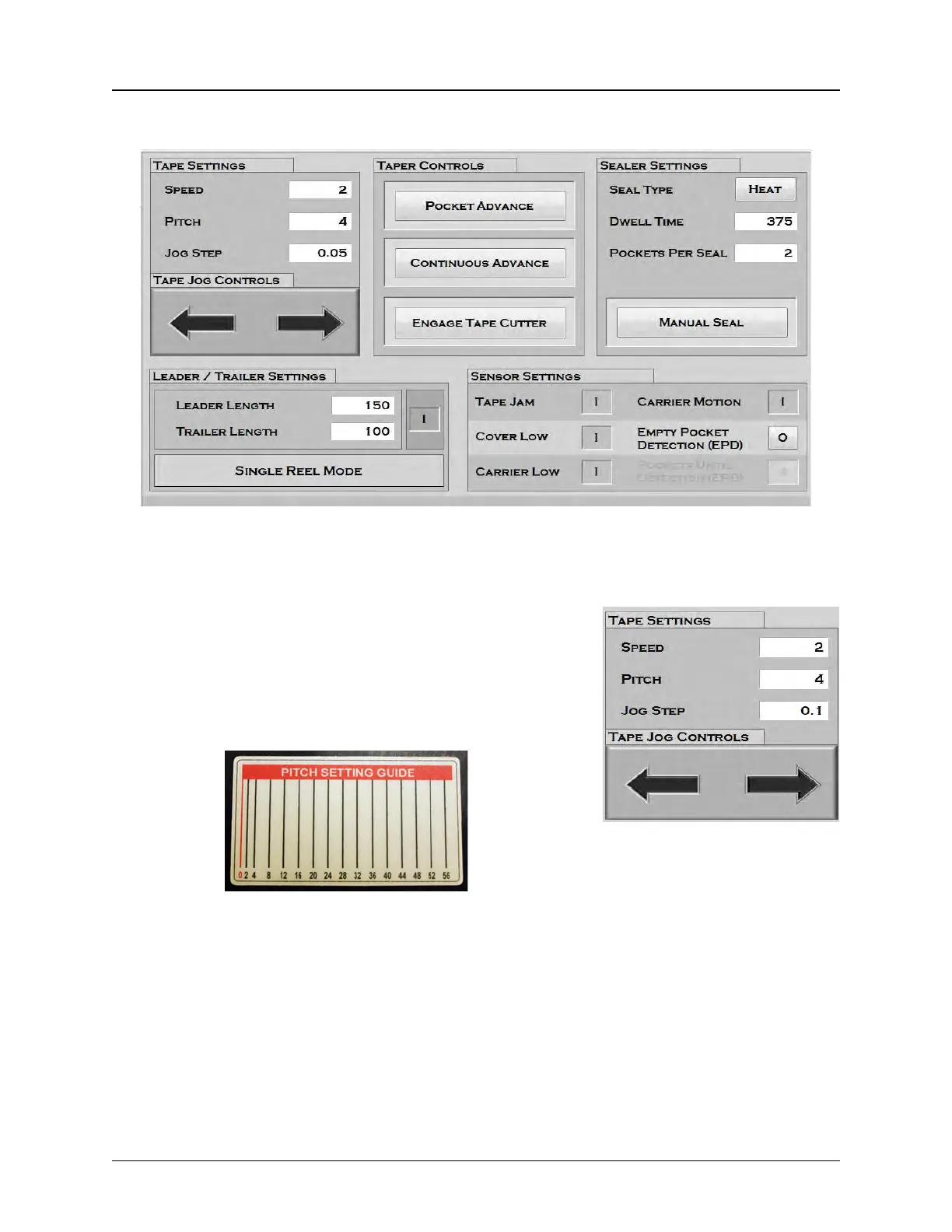 Jog Step sets the distance in millimeters the carrier tape will move forward or backward each