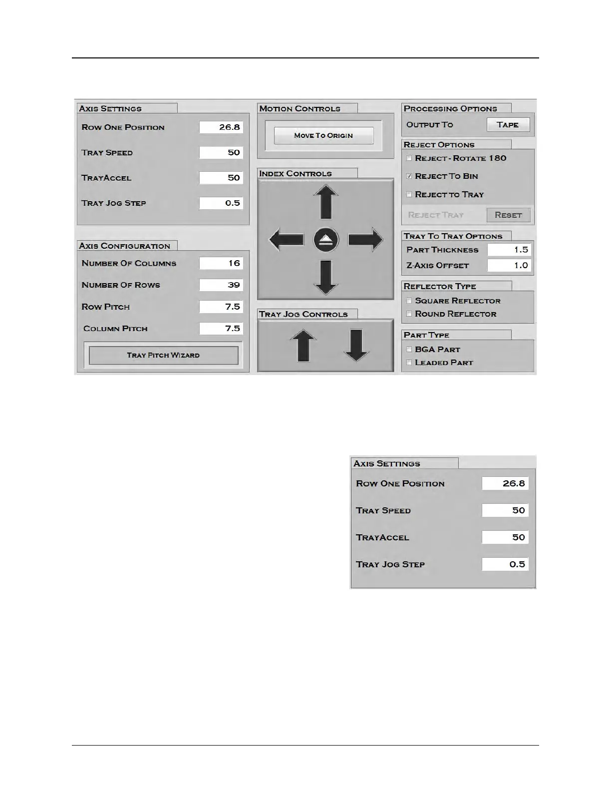 Tray Setup Tab