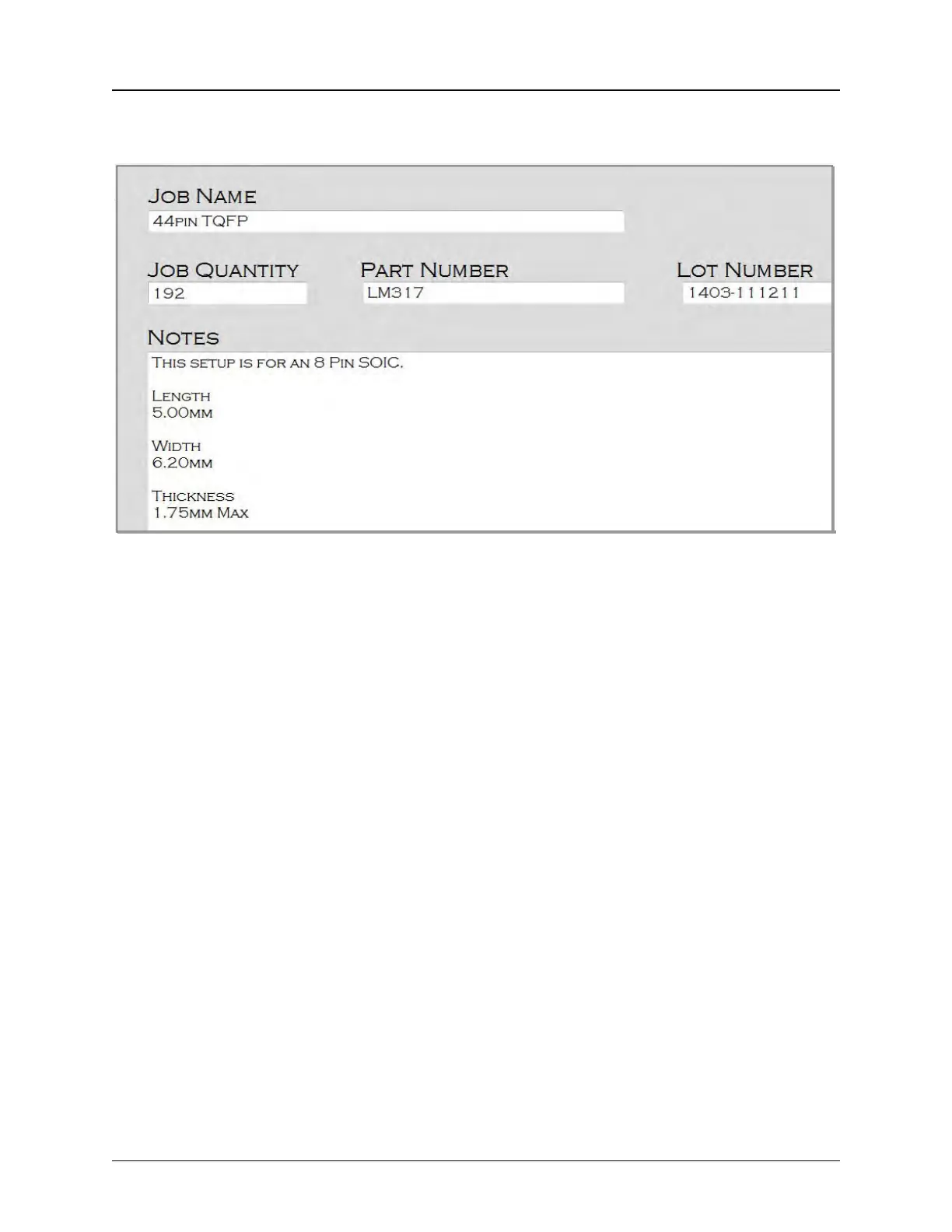 Lot Number refers to the unique lot number assigned to this job.