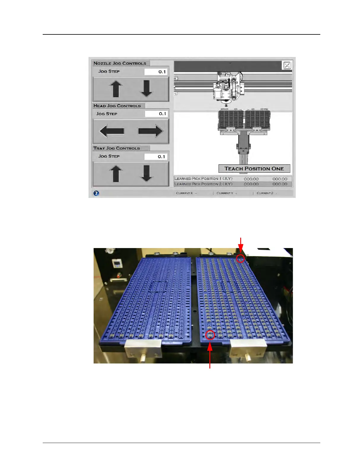 nozzle over the top, right pocket in Tray 1. This is Pick Position 1 (Origin).