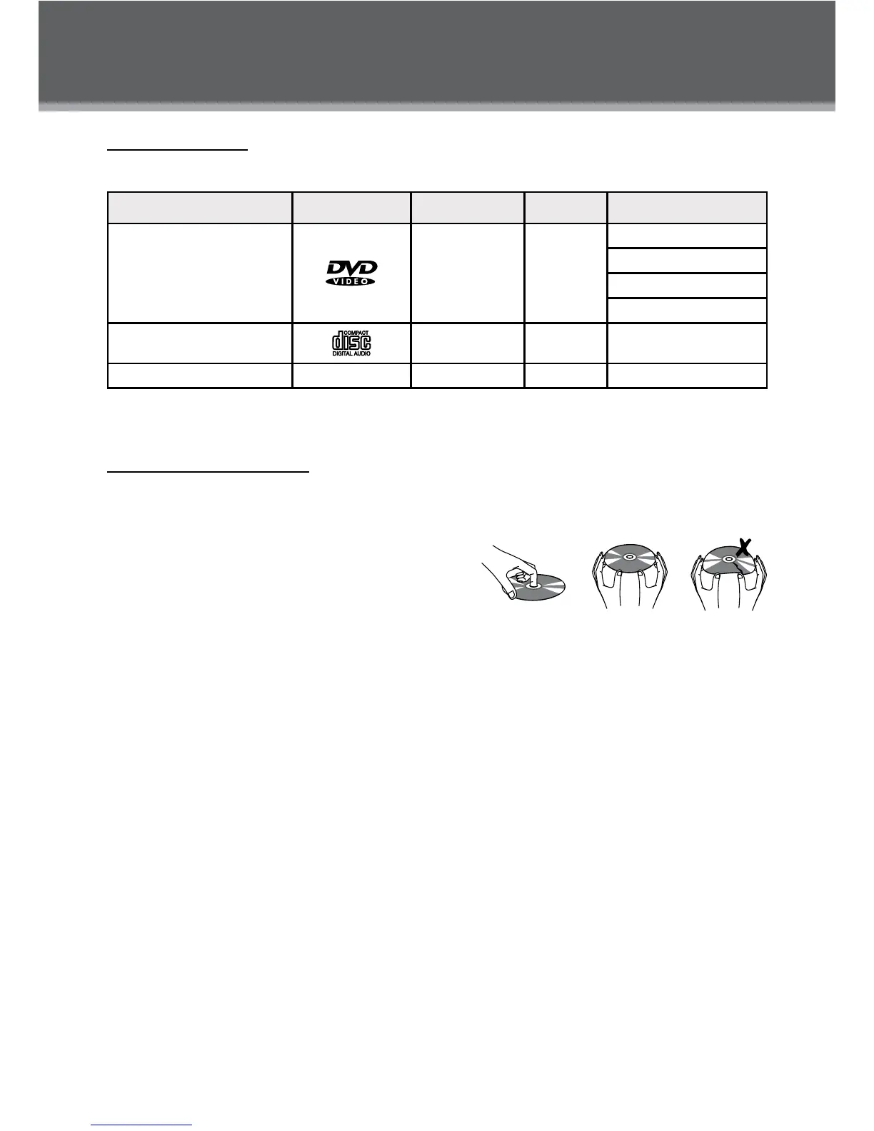 This DVD player supports playback of the following discs.