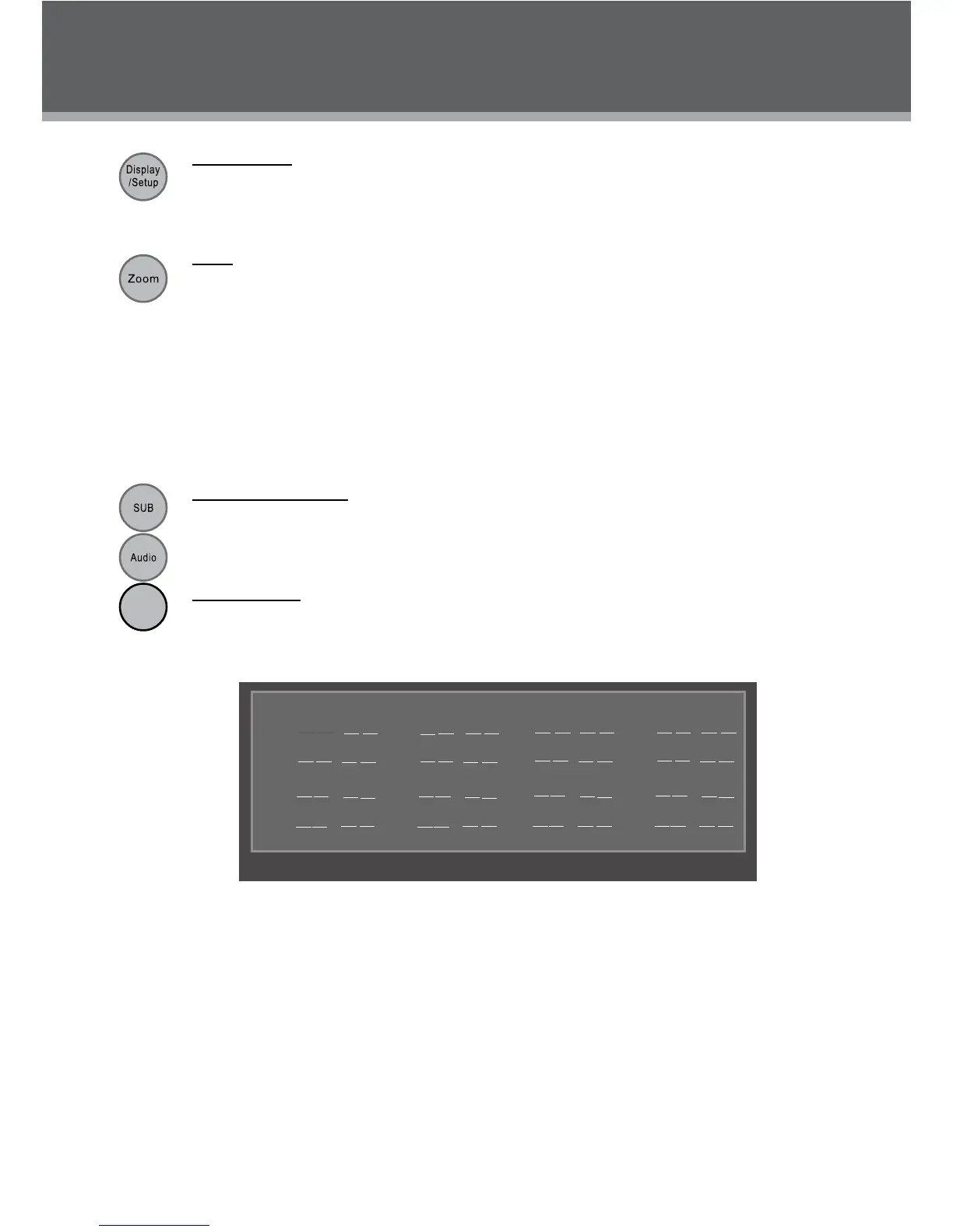 During DVD playback, each successive press of ZOOM will change the level of magnication •