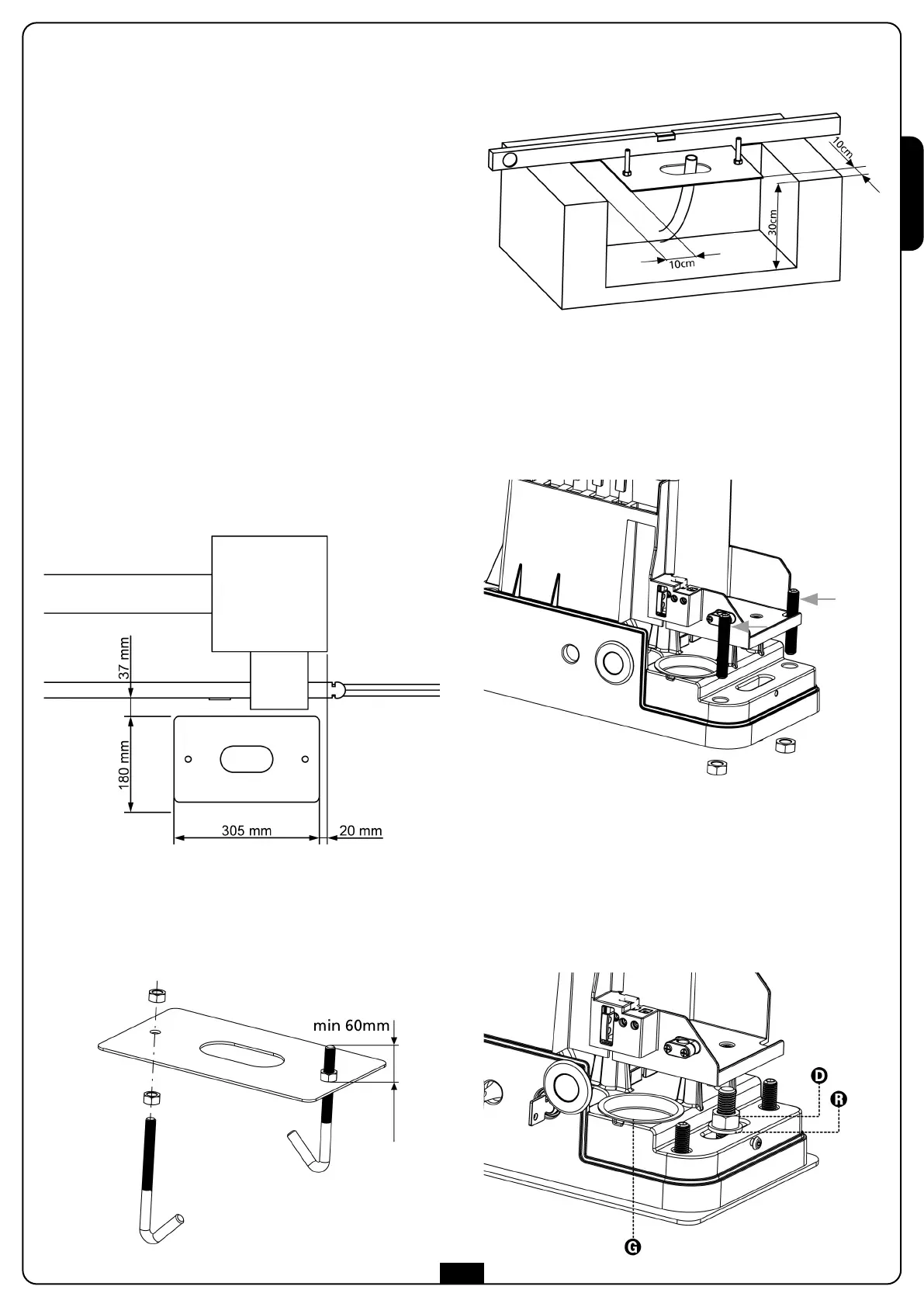 8. Control that the motor is perfectly parallel to the gate, then