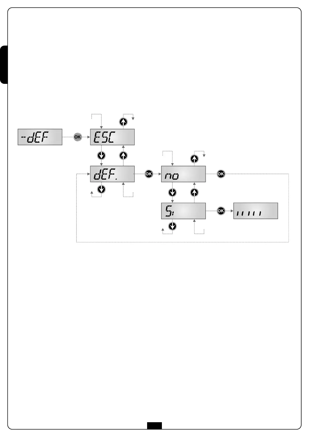 6. Press the OK key: all parameters are overwritten with their default values (see the table on pages 74-75), the control units exits