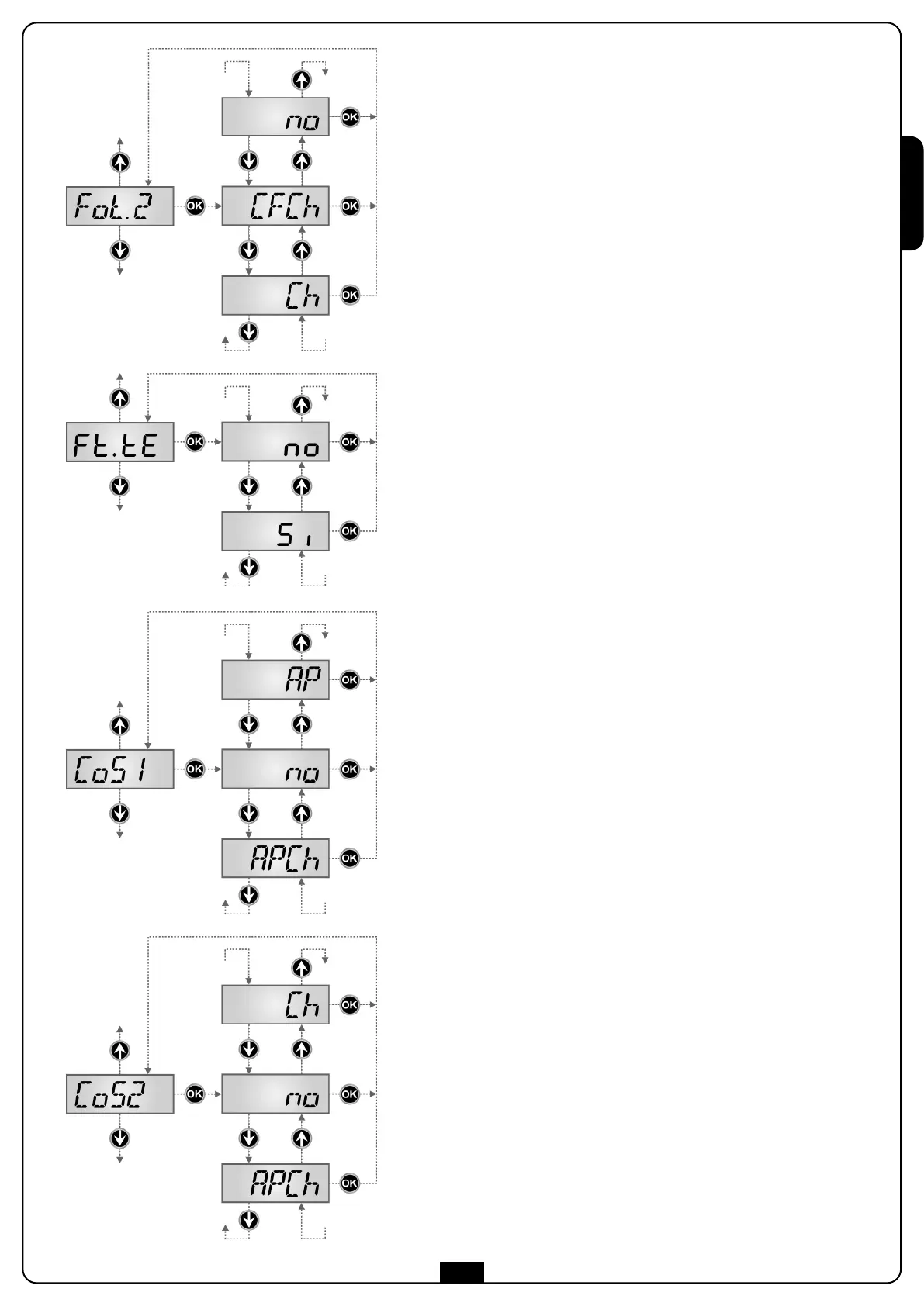 This menu allows enabling the input for type 2 photocells, that is to say,
