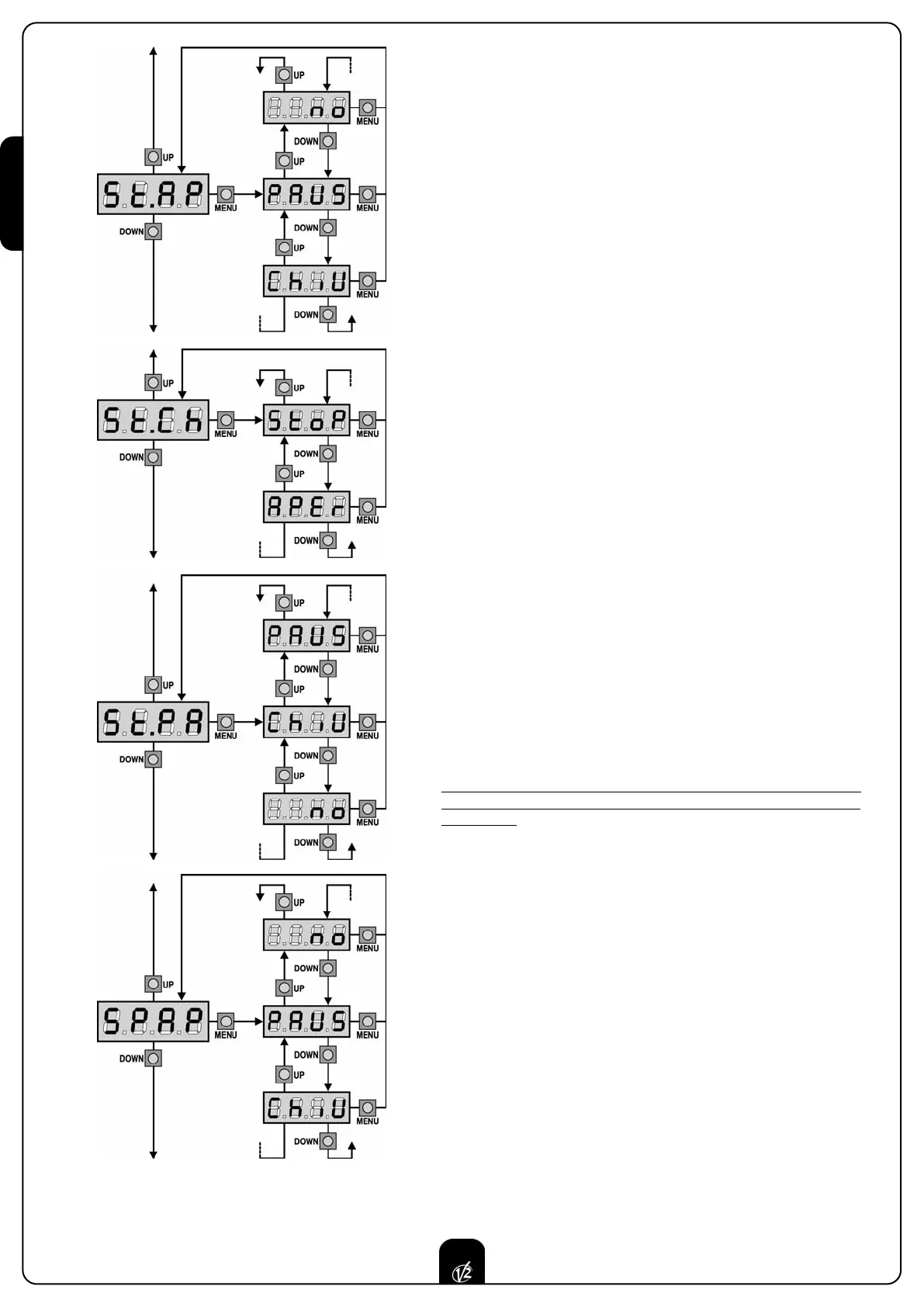 Select option PAUS, to set up the “step-by-step” operation logic.