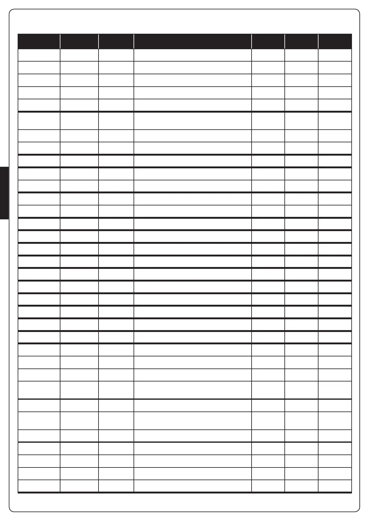 22.6 - TABLA DE LOS PARÁMETROS DE FUNCIONAMIENTO