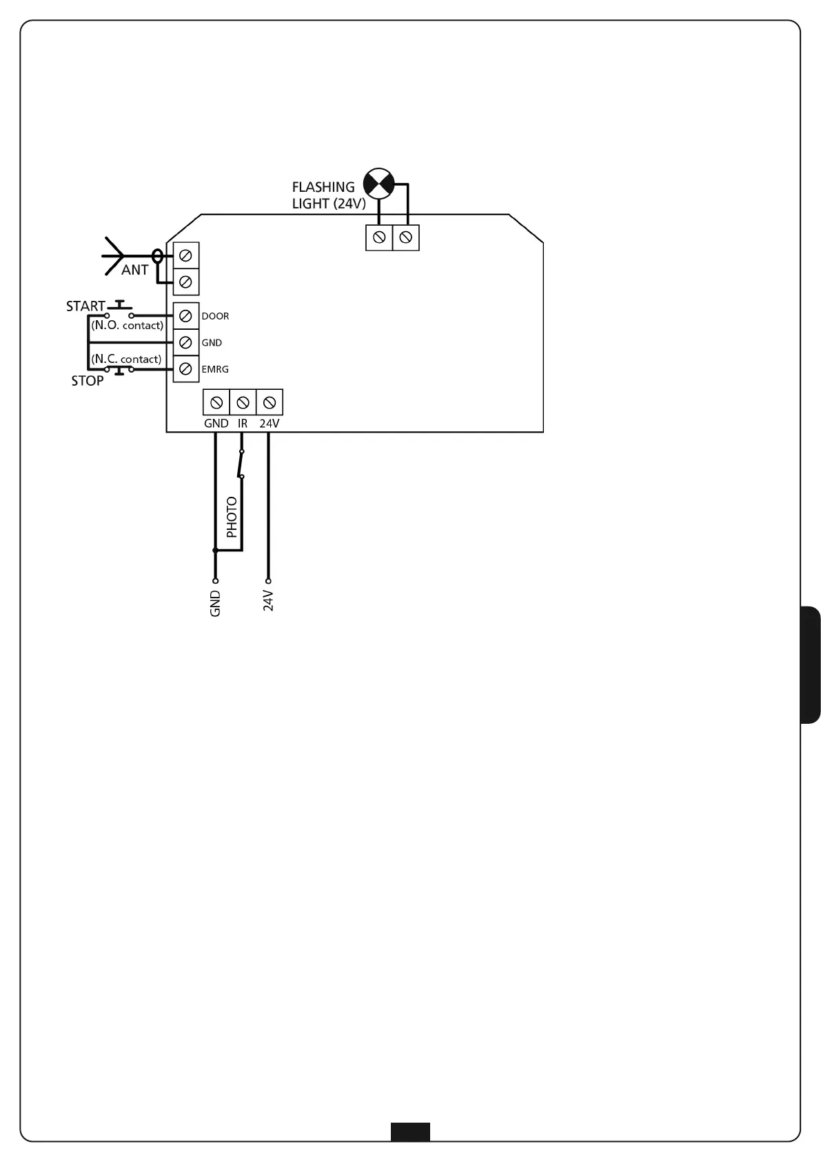 Für den Anschluss der Fotozellen und des START-Knopfes siehe nachfolgendes Schema: