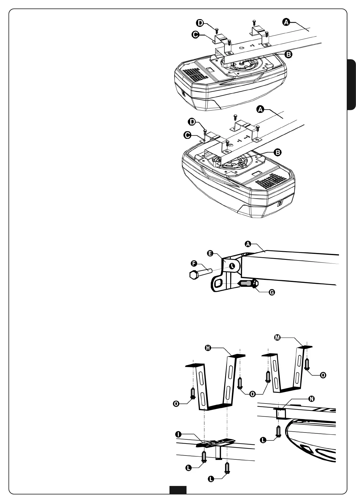 2.6 Fix the front pierced bar H to the fixing bracket I in