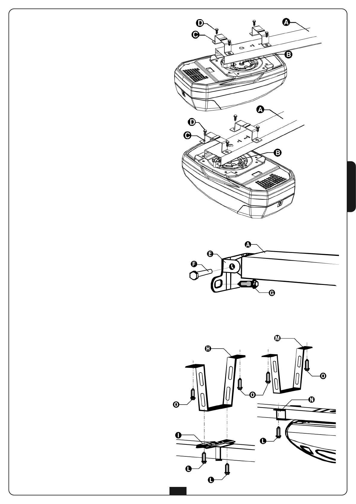 2.4 Enganche el perfil A al soporte utilizando el tornillo F