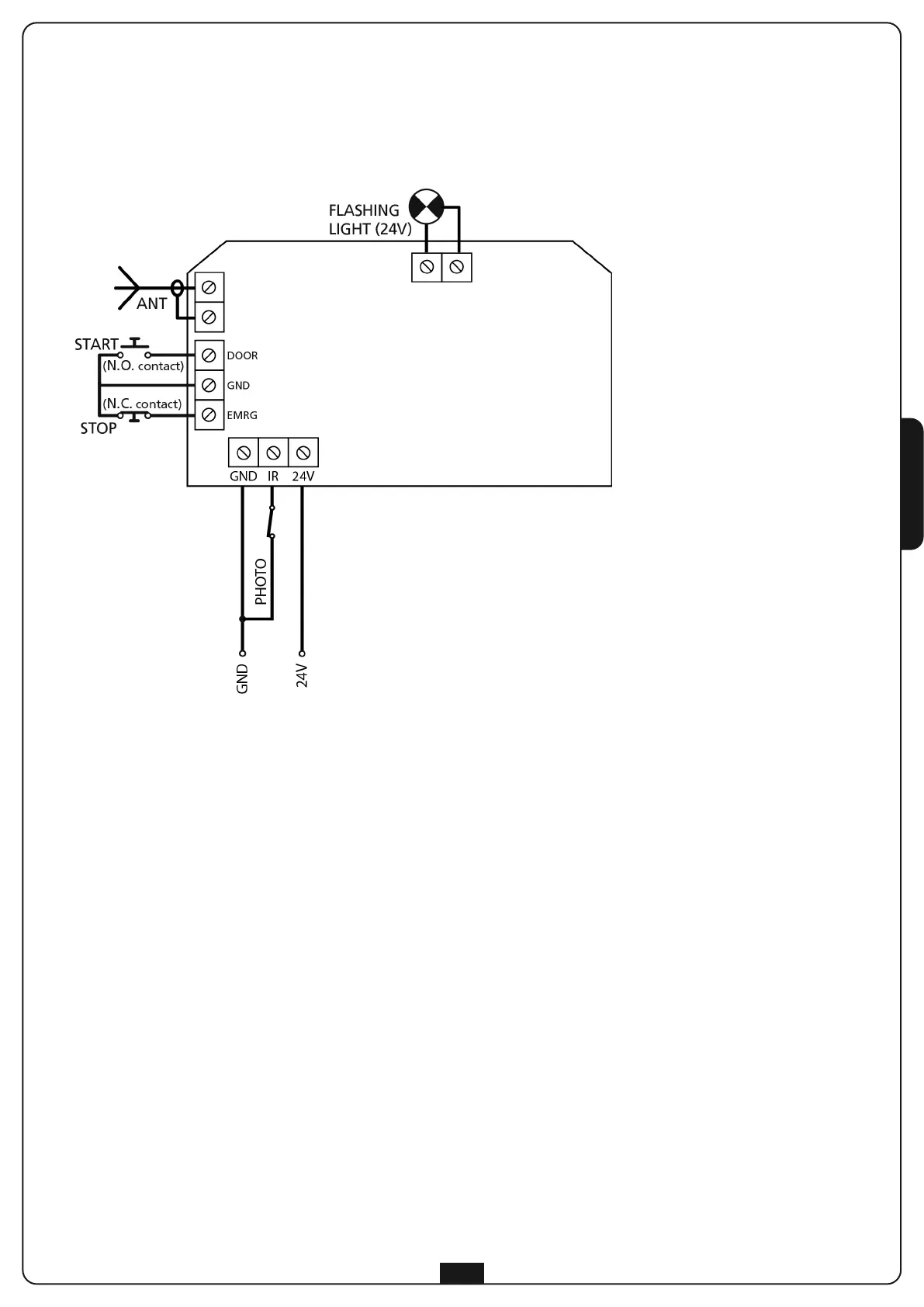 Para la conexión de las fotocélulas y el botón de START (inicio) consulte el diagrama siguiente: