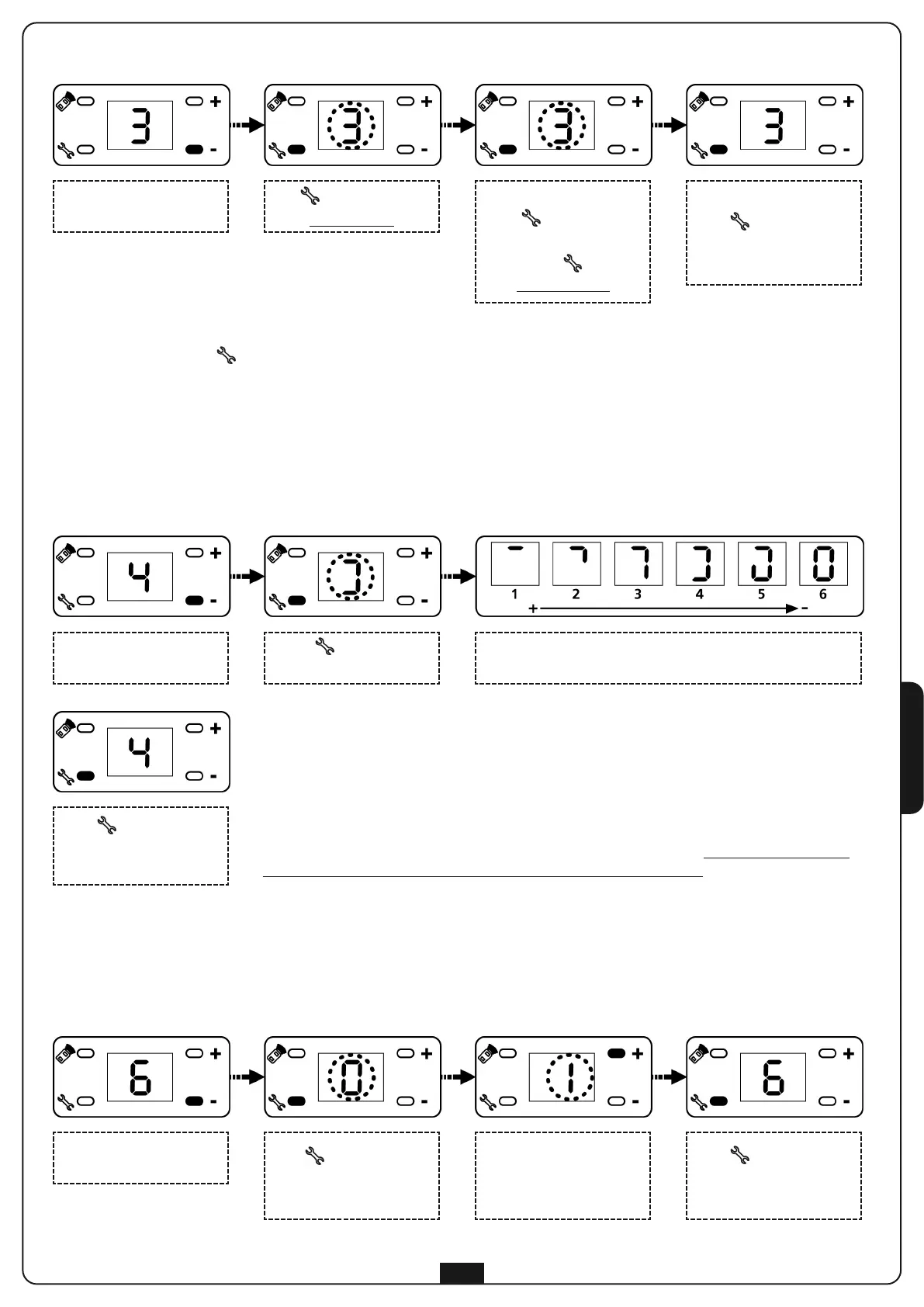 Parameter speichert: Taste 5 Sekunden gedrückt halten, bis sich die Displaysegmente einzeln nacheinander einschalten und