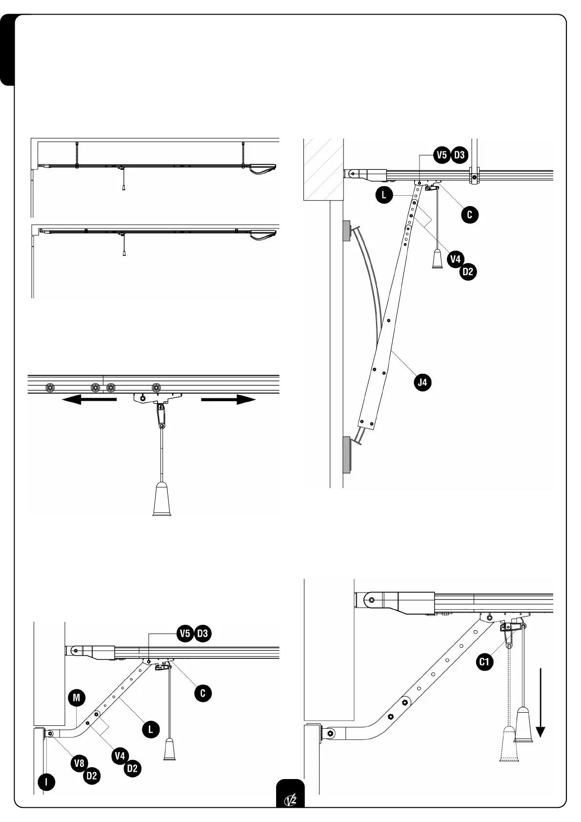 ad archetto utilizzando 2 bulloni V4 e 2 dadi D2.