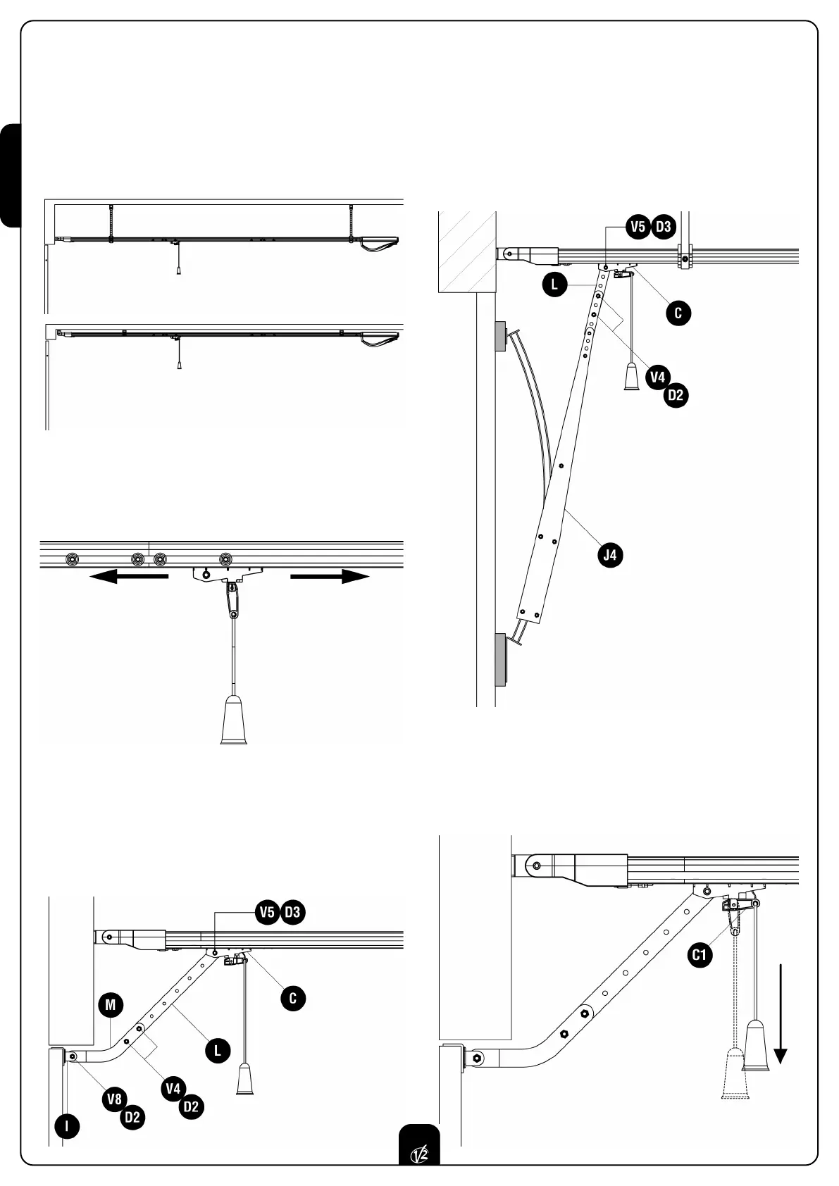 means of the special curved arm M through 2 bolts V4,