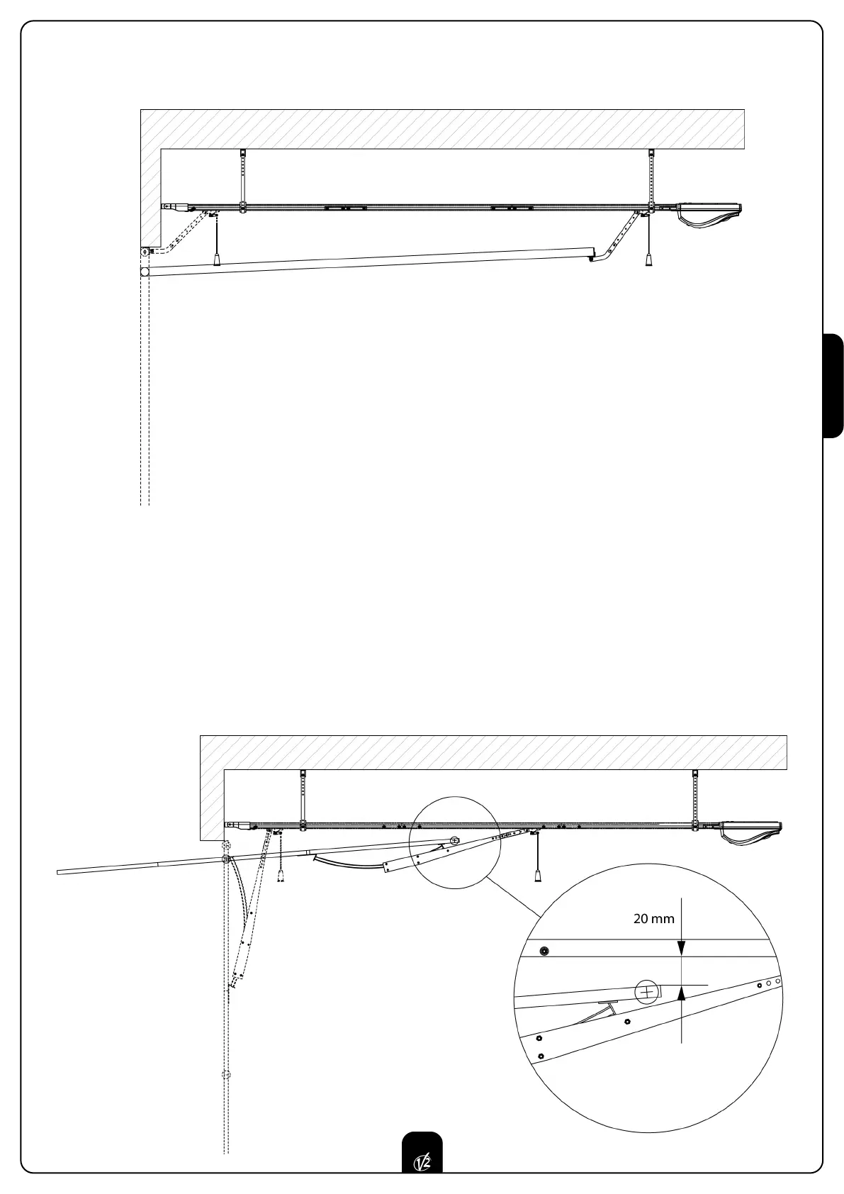 entre la parte superior de la puerta y el perfil nunca sea inferior a 20 mm.