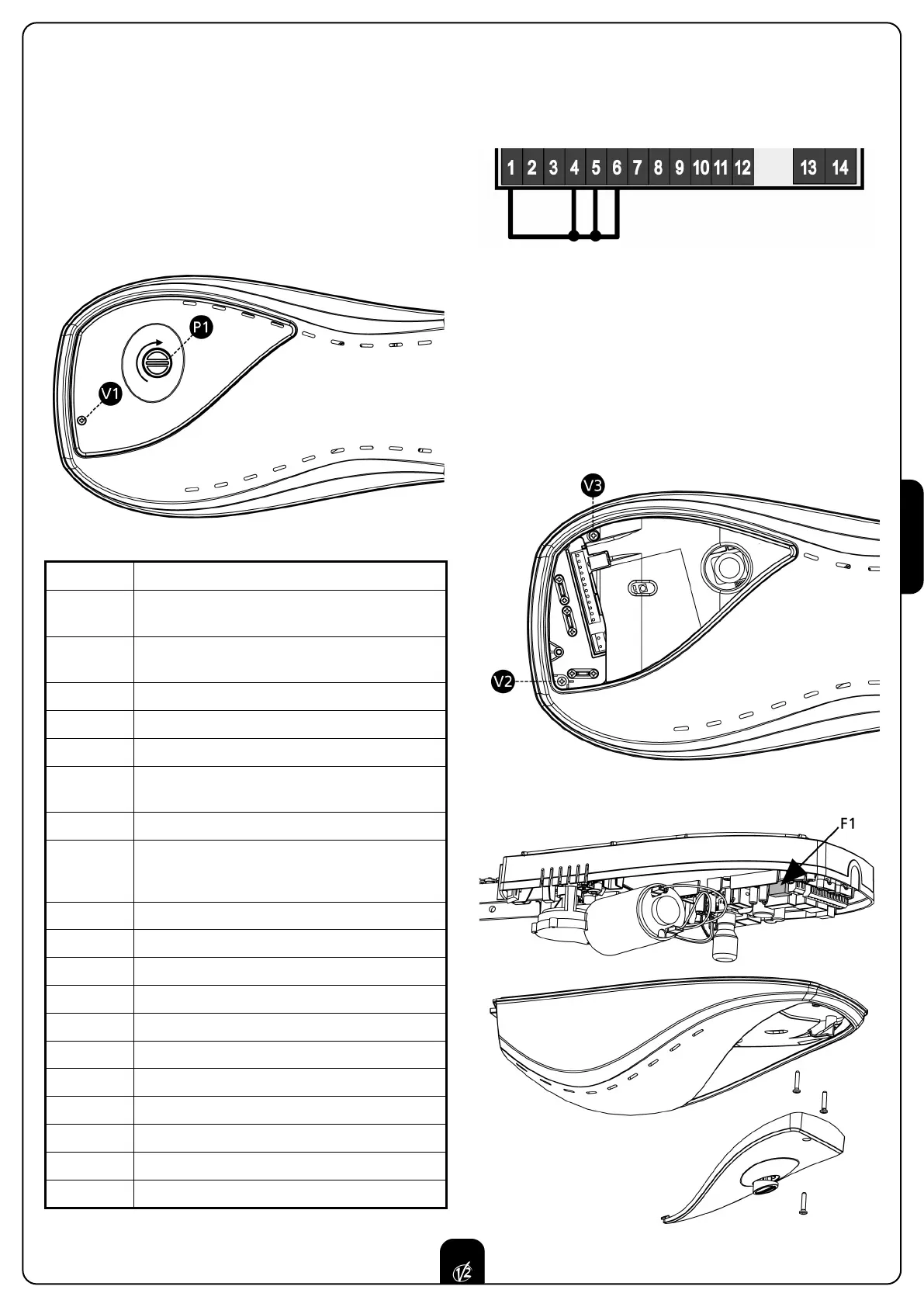 1. Desapertar o parafuso V2 et V3