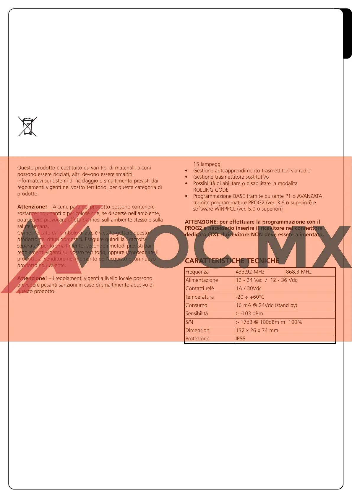 dedicato (TX). Il ricevitore NON deve essere alimentato