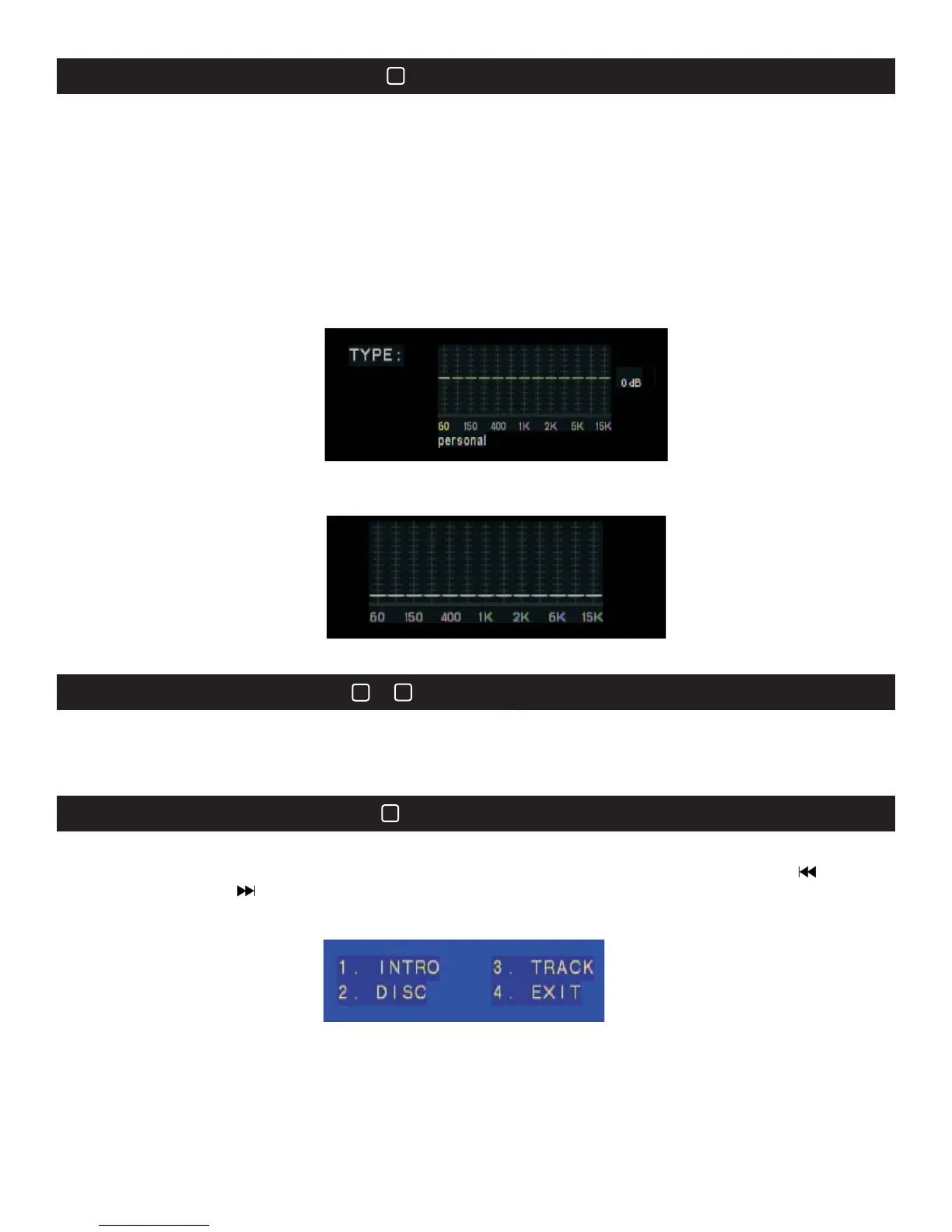their tastes. Pressing the EQ button turns the equalizer on. Pressing the EQ button a second time