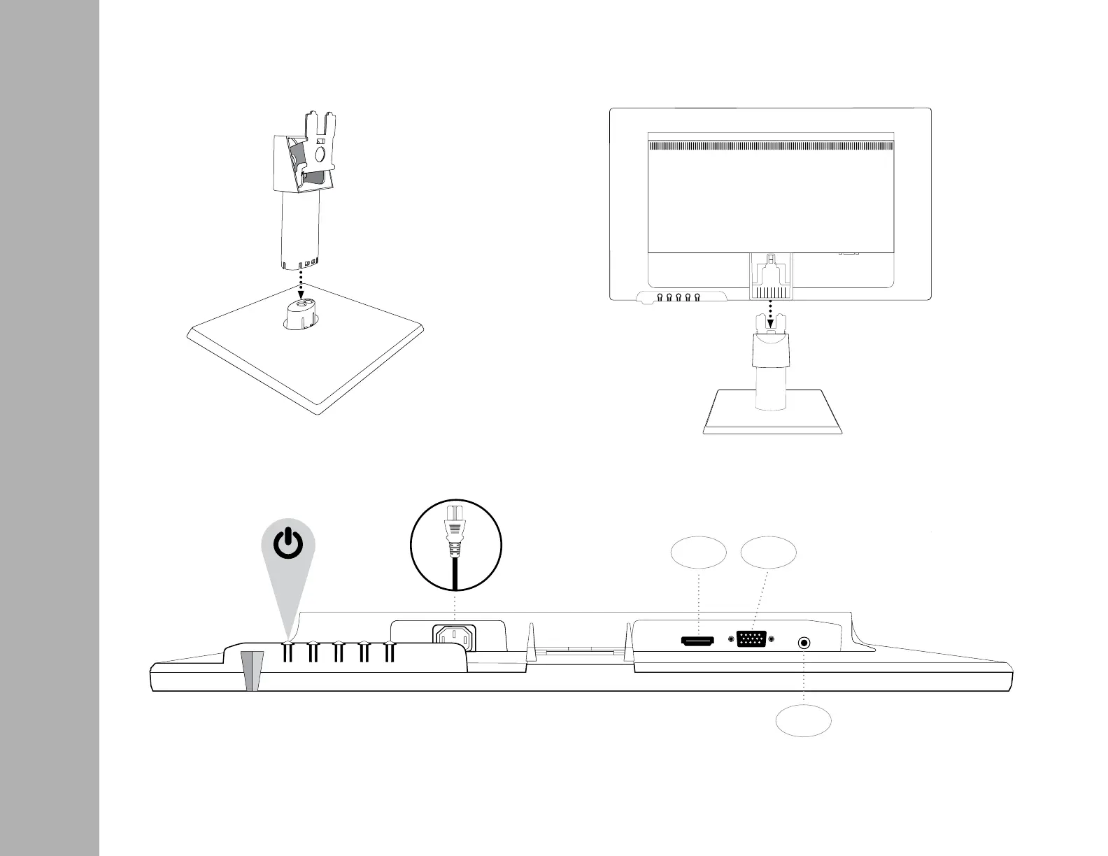 1. Insert post into base 2. Slide post into monitor slot