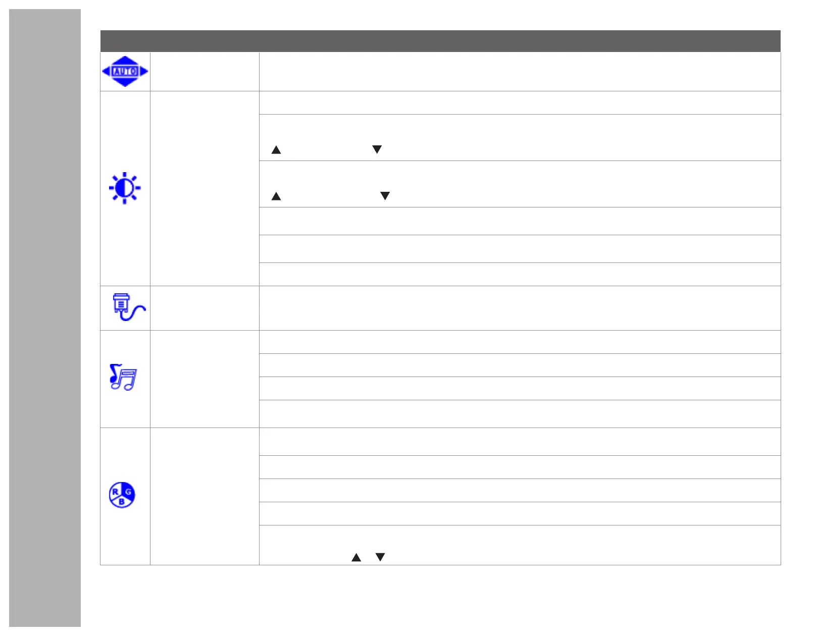 Per regolare manualmente le funzioni Contrast, Brightness, DCR, ECO e OD dell’immagine su schermo.