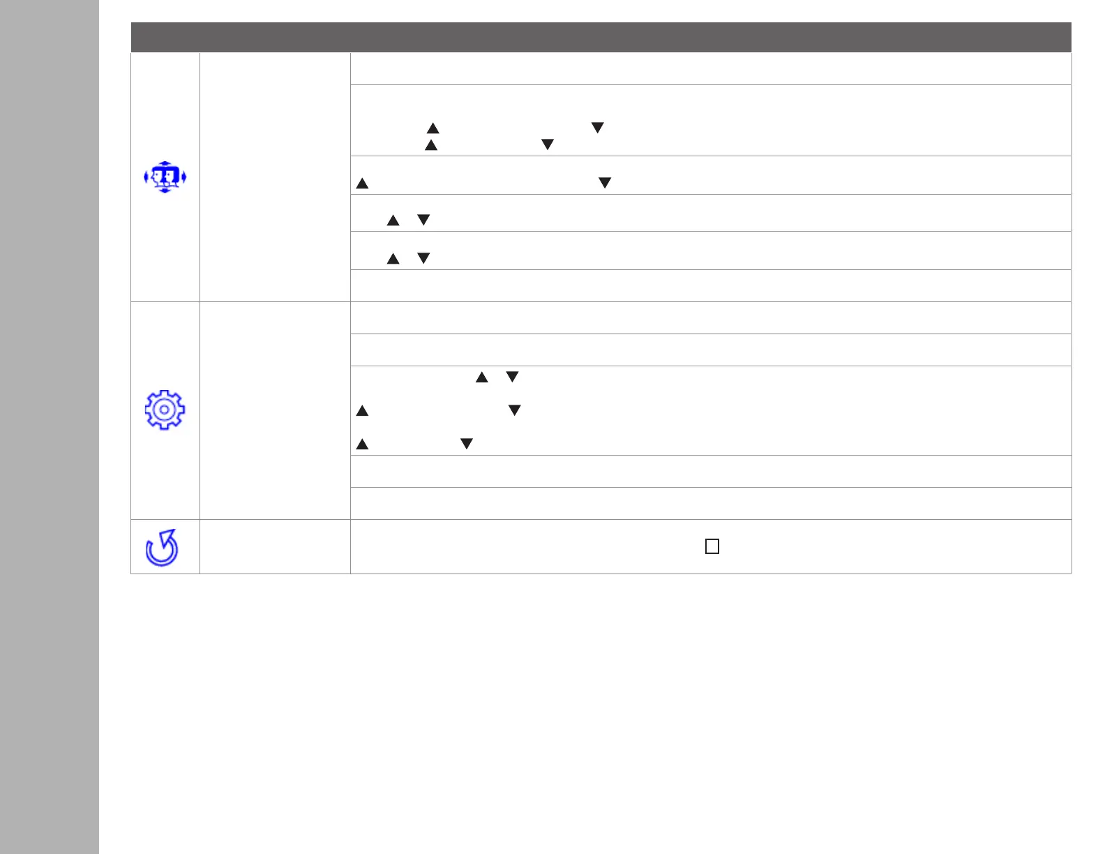 H. Position: : move screen to the right, : move screen to the left.