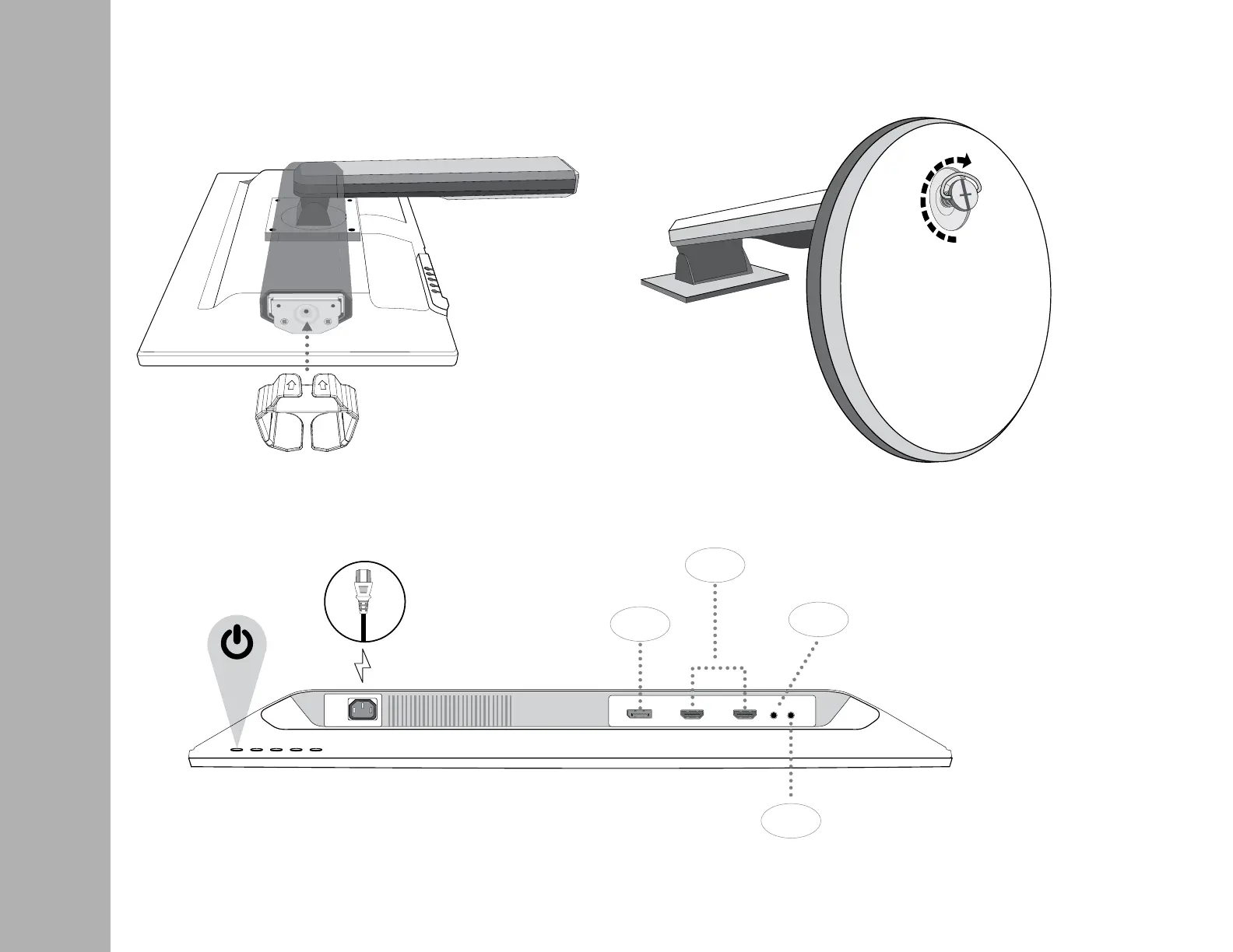 1. Slide on Cable Holder and rotate arm 2. Screw on base