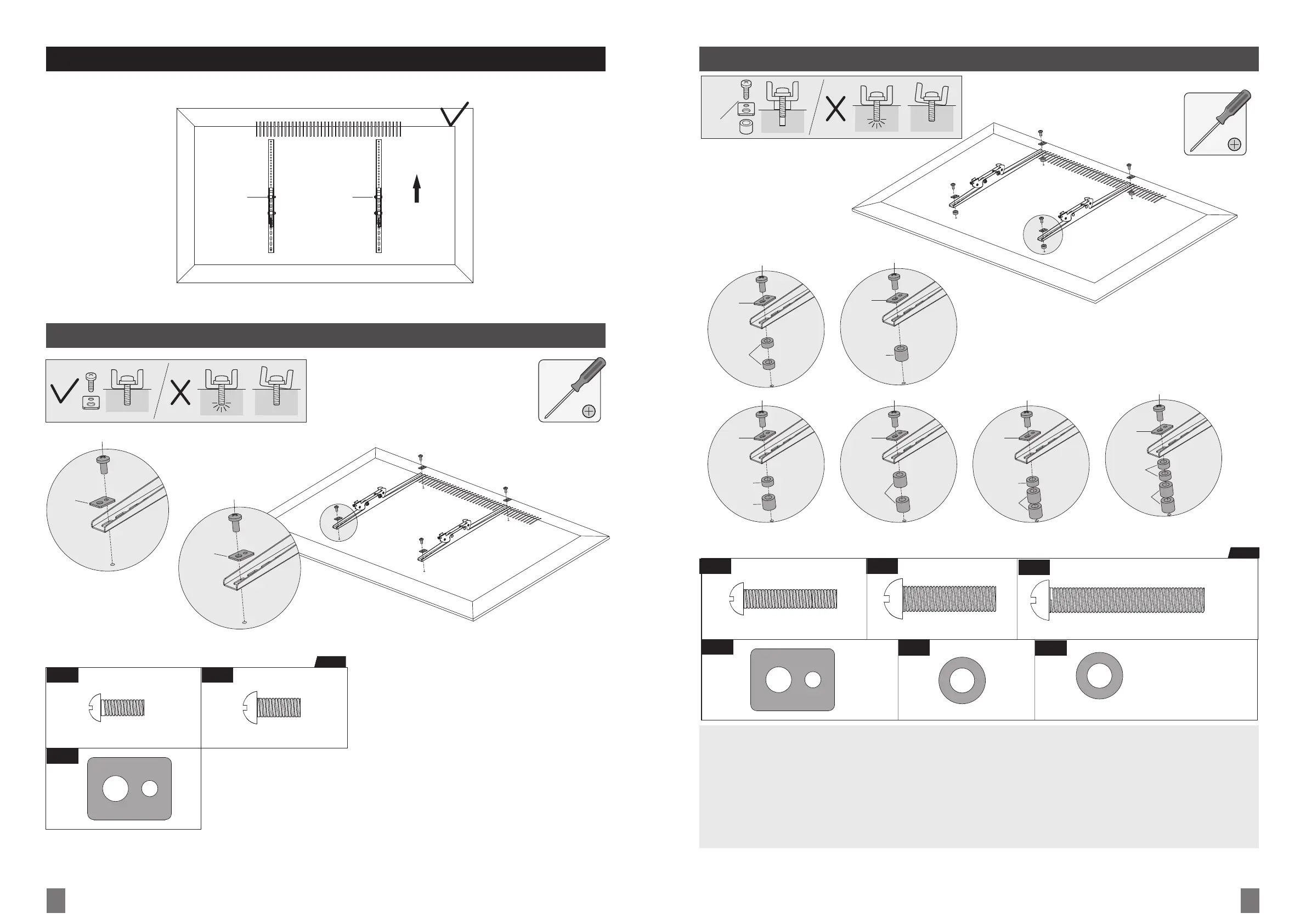 Note: Choose the appropriate screws, washers and spacers (if necessary) according to the type of screen.