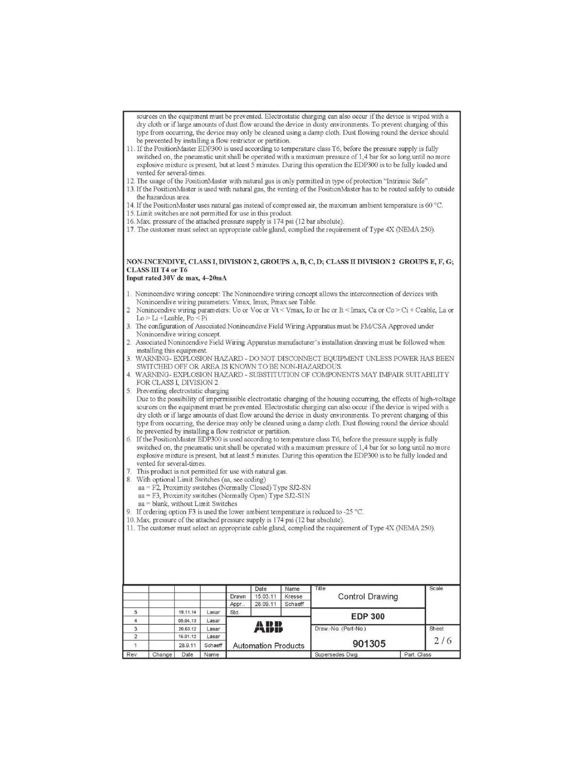 VAC D500 - Appendix: Control Drawing 901305; Natural Gas Operation and Safety Notes