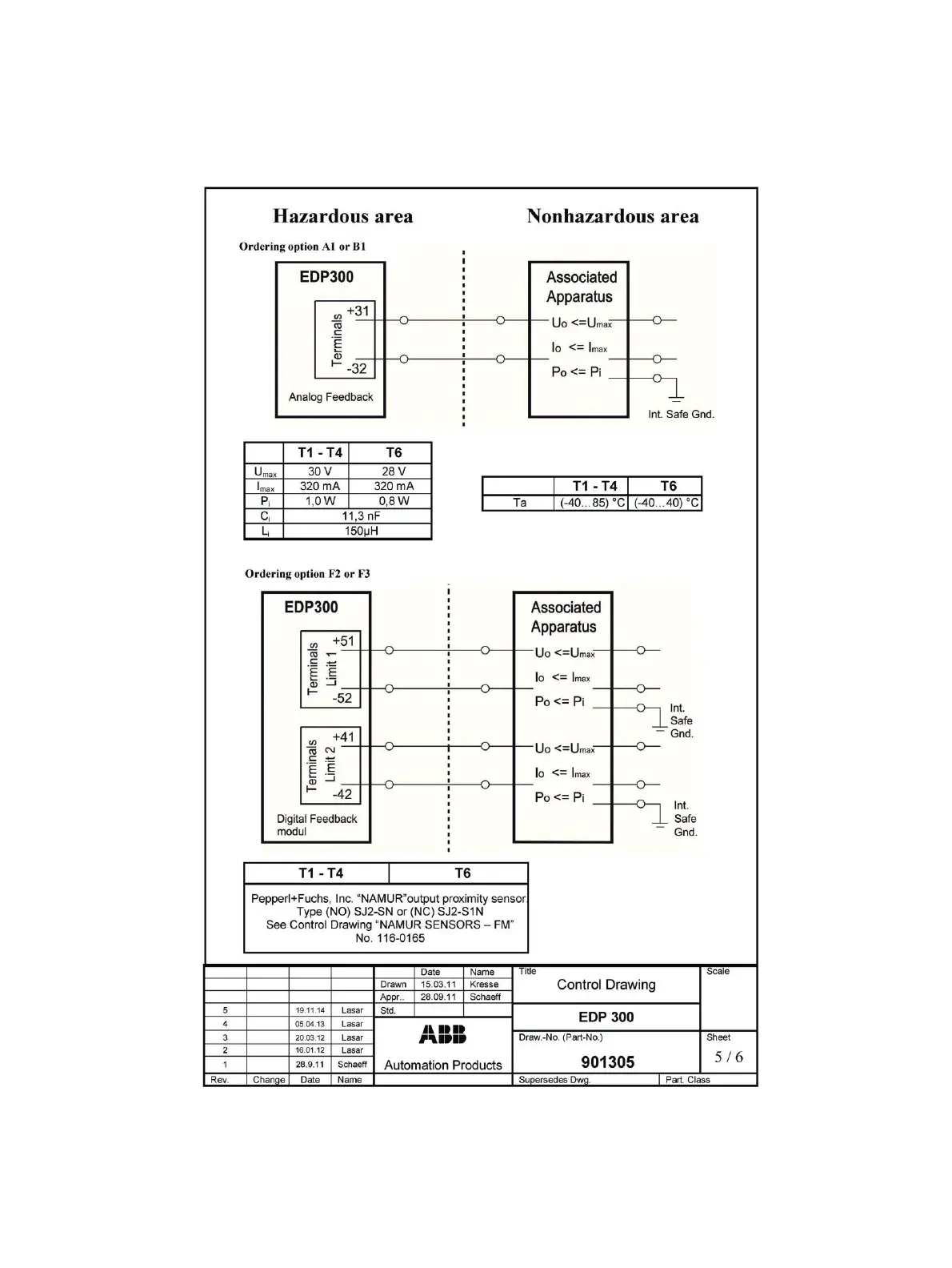 VAC D500 - Appendix: Control Drawing 901305; Analog Feedback and Limit Switch Connection Diagrams