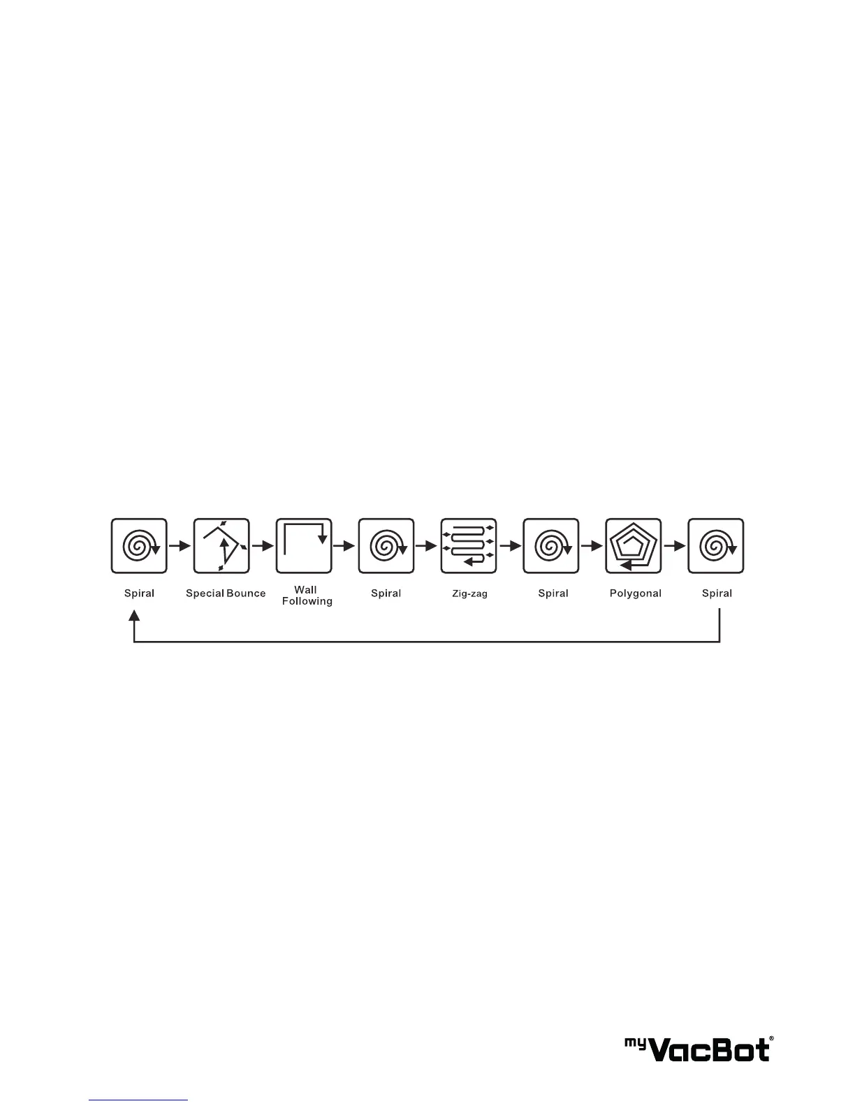 2. Once the myVacBot B100 is turned on, it will follow a ve step repetitive movement cycling :