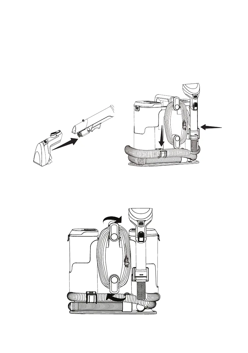 NOTE: Put the exible hose onto the hose storage holder. Snap the end of the