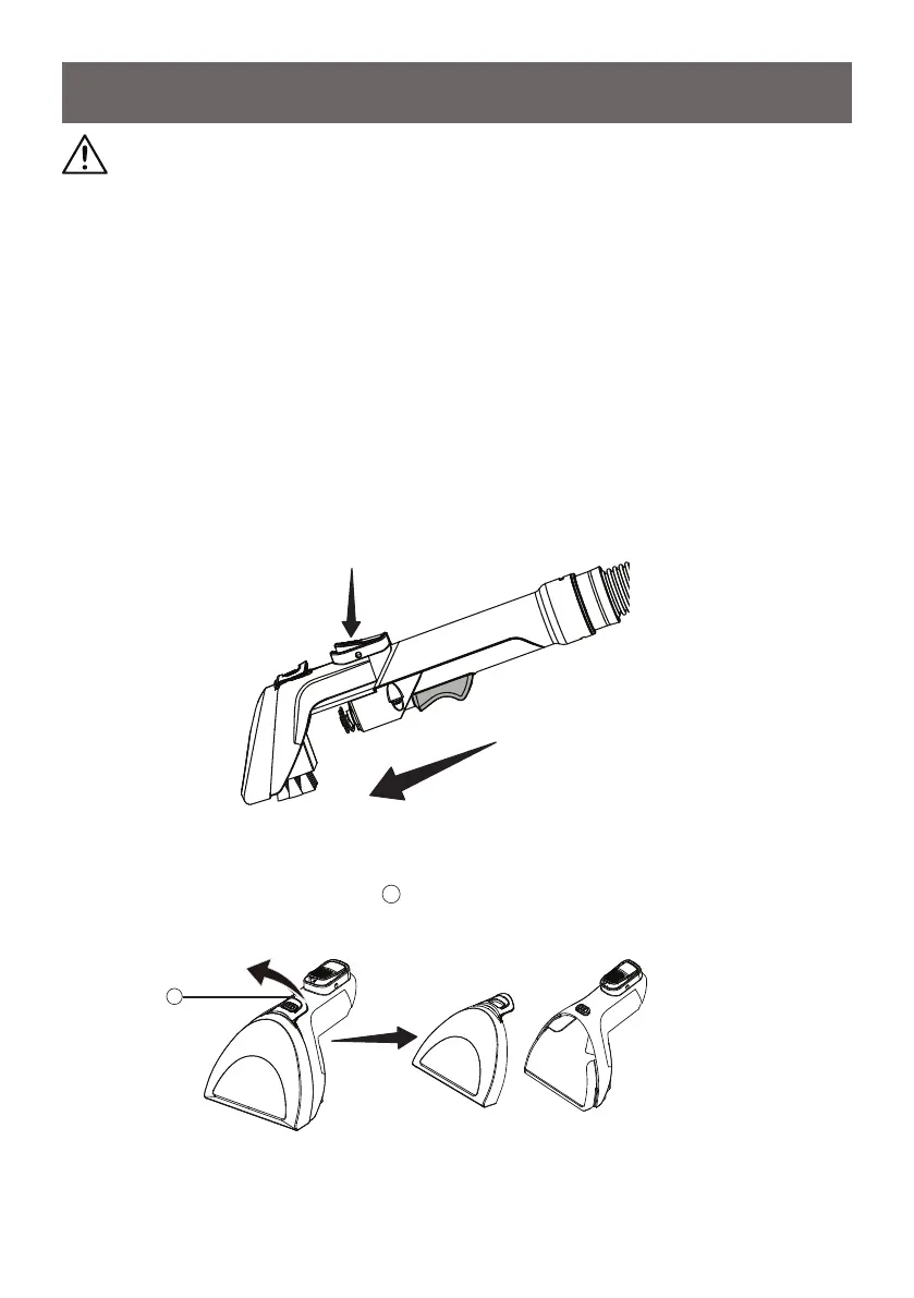 Press the tool release button to remove the attachment from the hose.