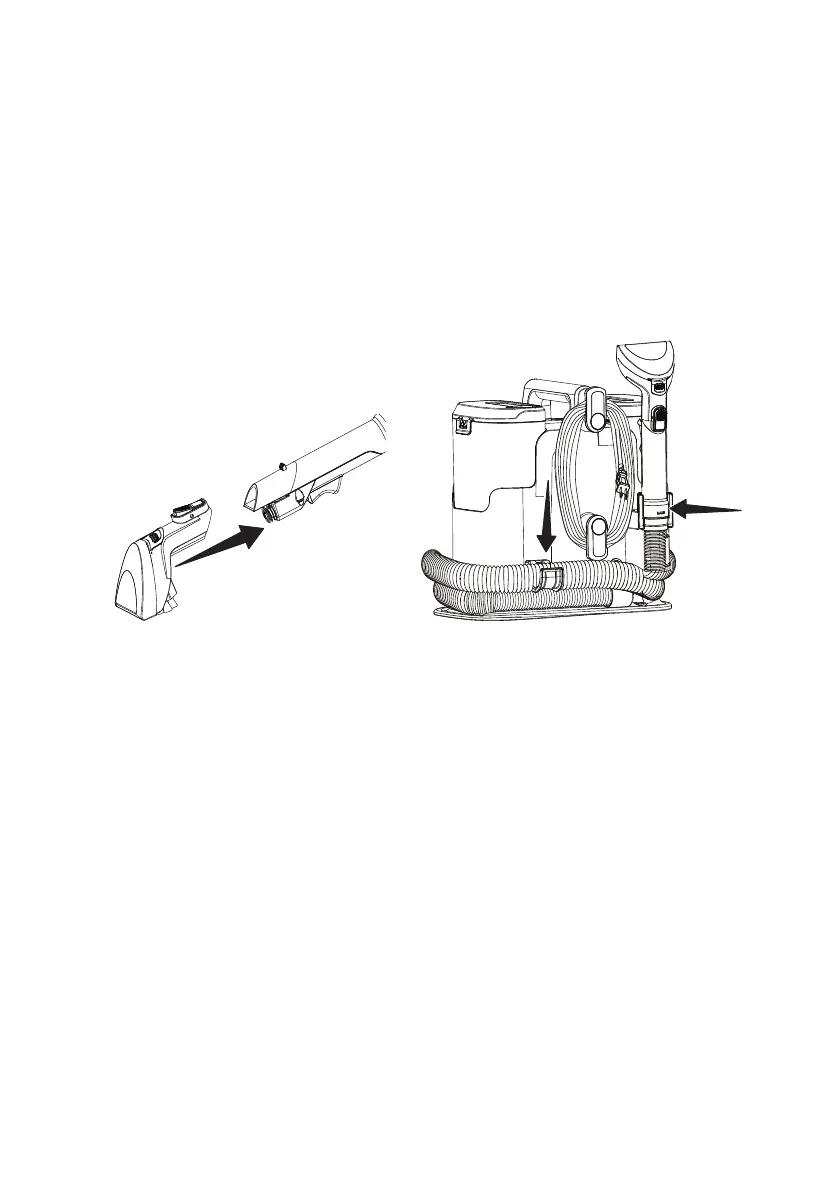 3. Faites glisser l’outil pour taches tenaces sur l’extrémité du tuyau d’aspiration