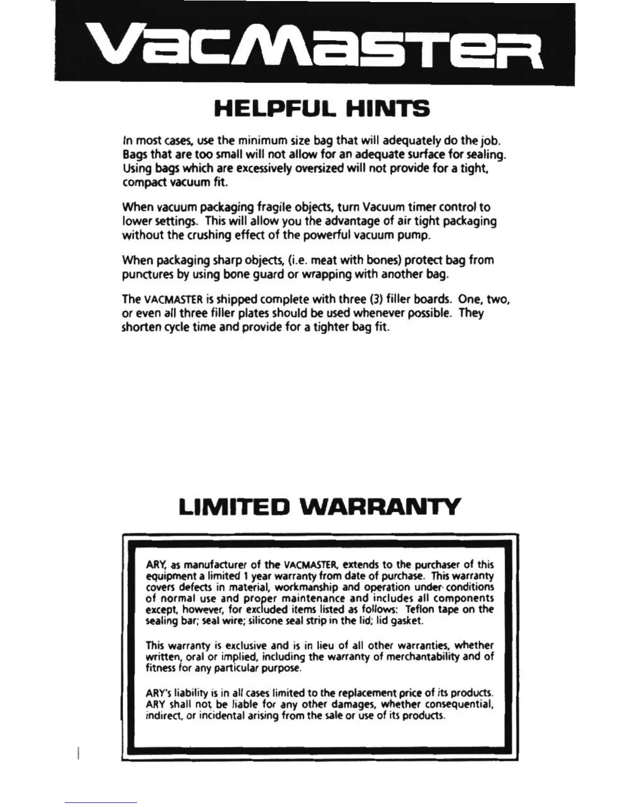 Vacmaster SVP-20 - Helpful Hints