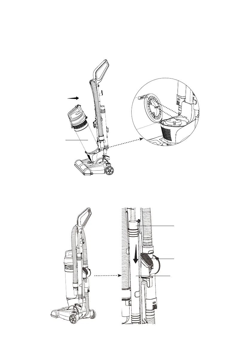 6. Insert the dust cup into the slots on the bottom of the main body, then press