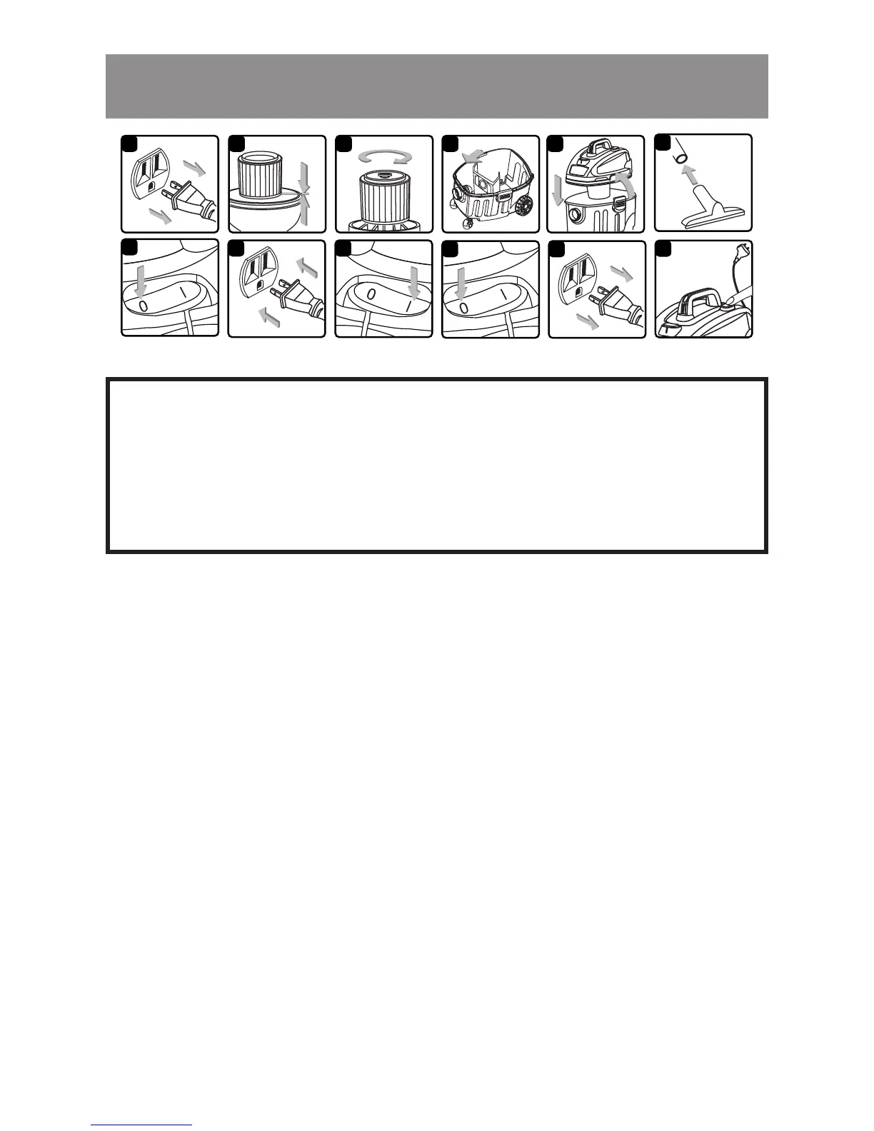 9. Once you have completed vacuuming, ip the switch to the ‘O’ OFF position and unplug the